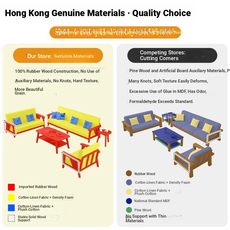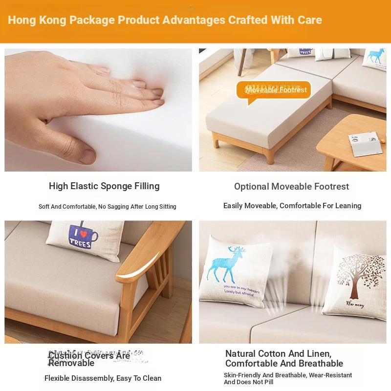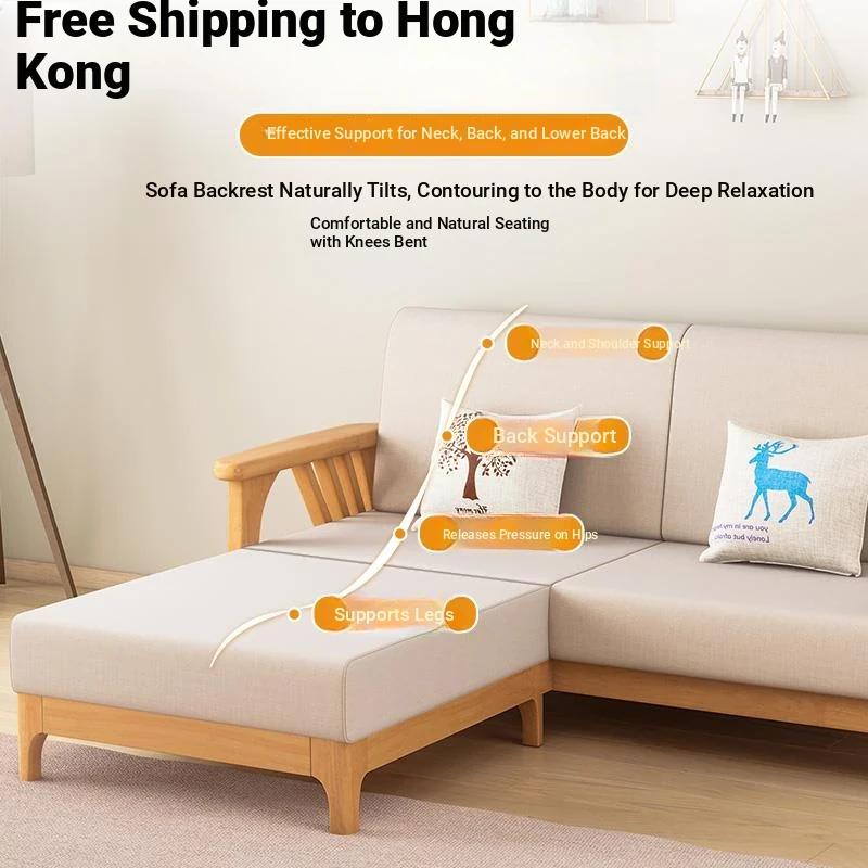 【Free Shipping in Hong Kong】Scandinavian Solid Wood Sofa Set - Modern Minimalist Design for Small Spaces - Perfect for Your Living Room with Fabric and Wood Finish