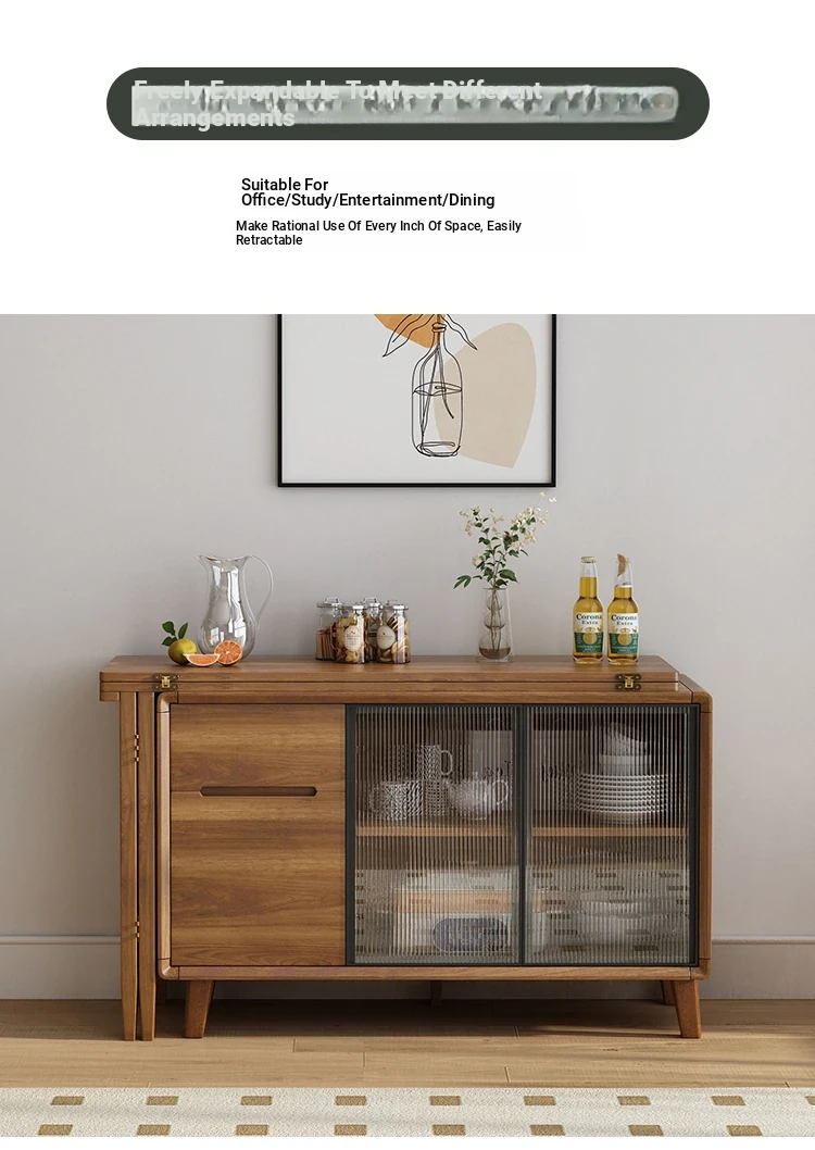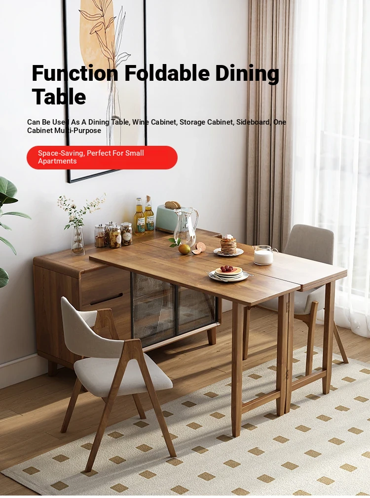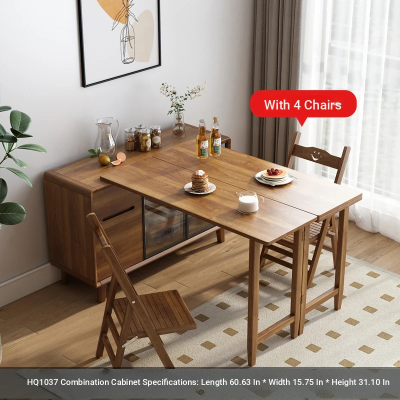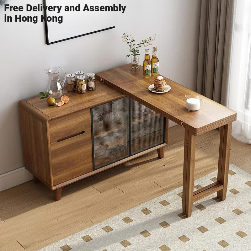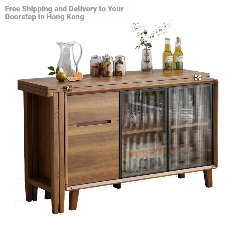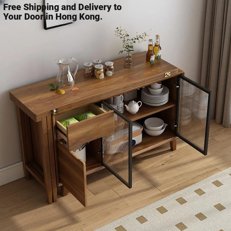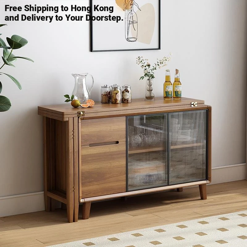 【Free Shipping in Hong Kong】Versatile Solid Wood Folding Dining Table and Side Cabinet Combo - Space-Saving Chinese Style for Small Homes, Perfect Wall-Mounted Storage Solution!