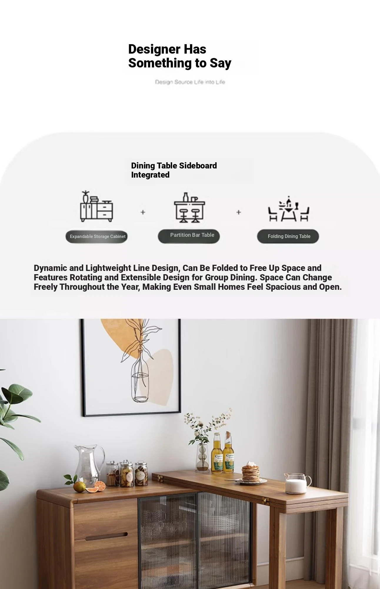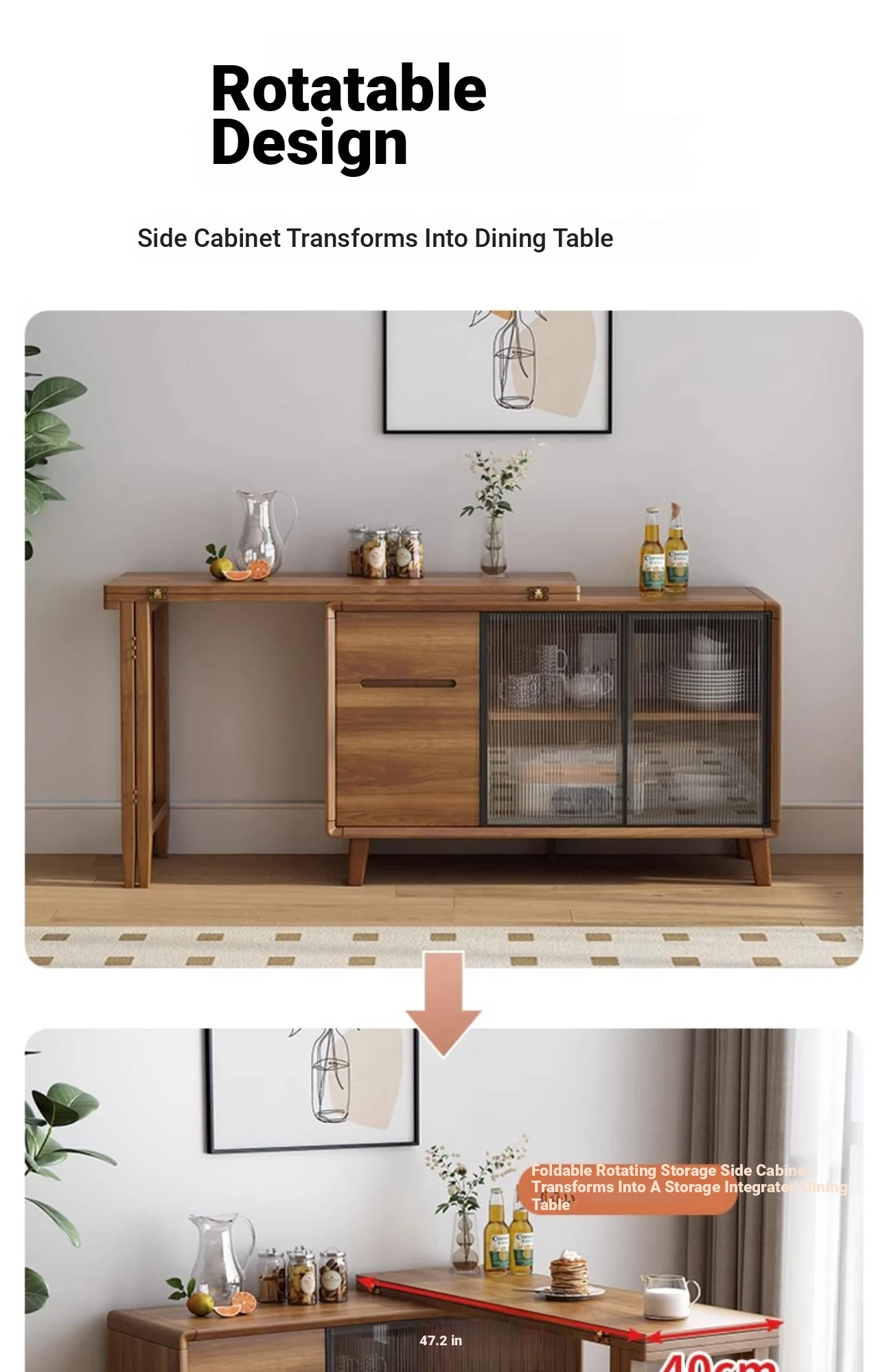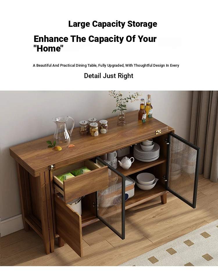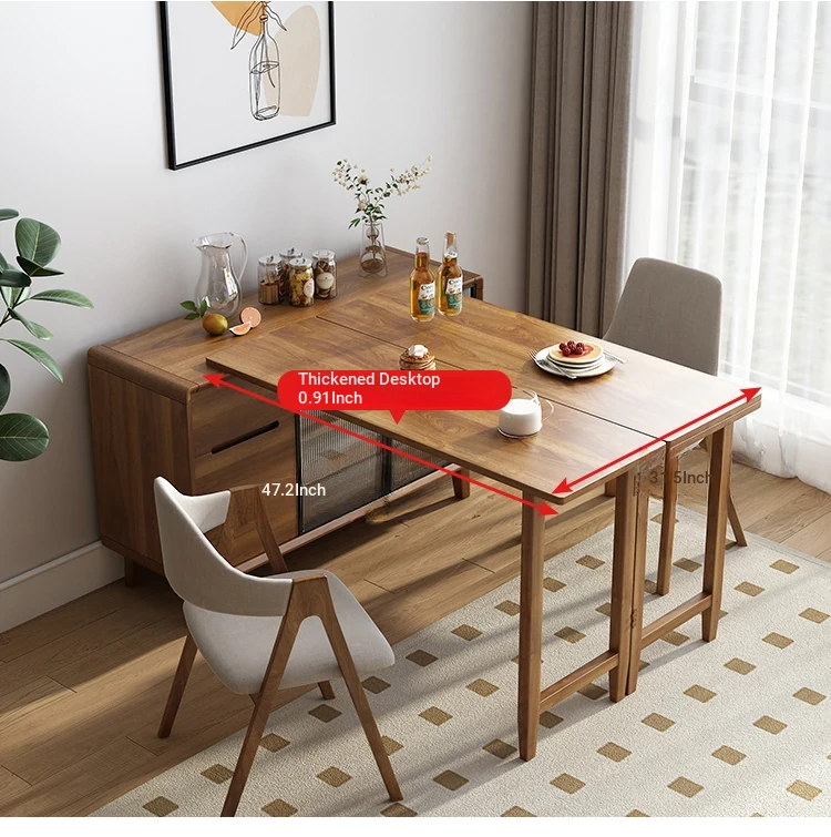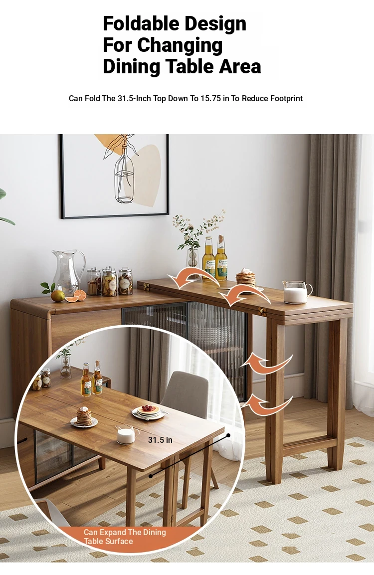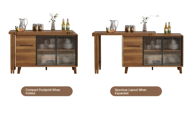 【Free Shipping in Hong Kong】Versatile Solid Wood Folding Dining Table and Side Cabinet Combo - Space-Saving Chinese Style for Small Homes, Perfect Wall-Mounted Storage Solution!