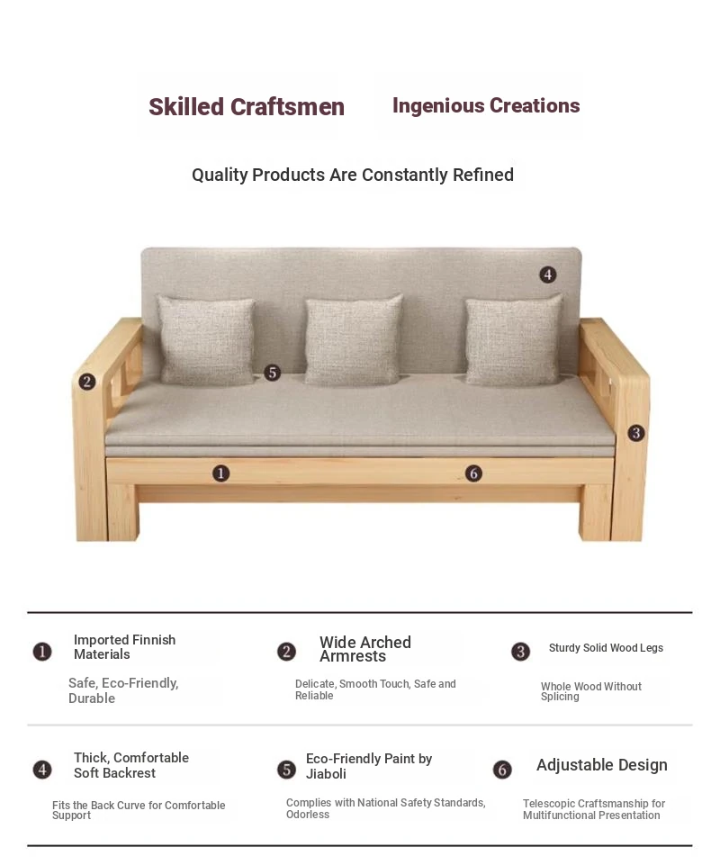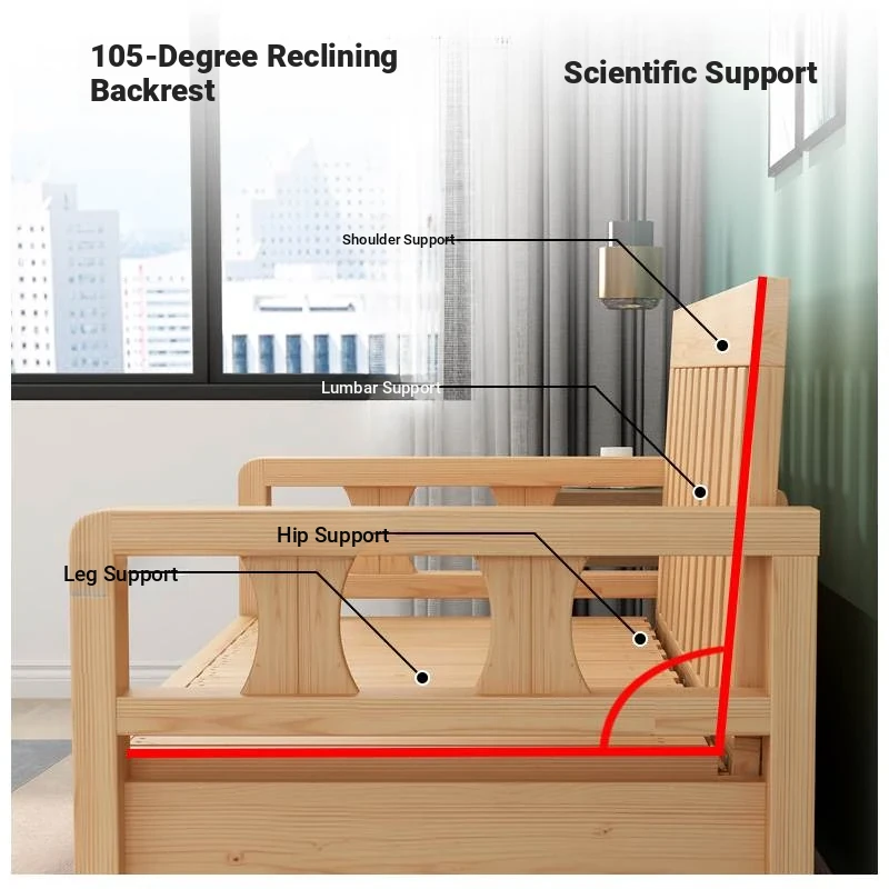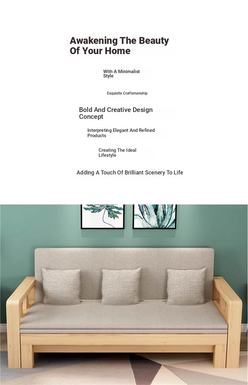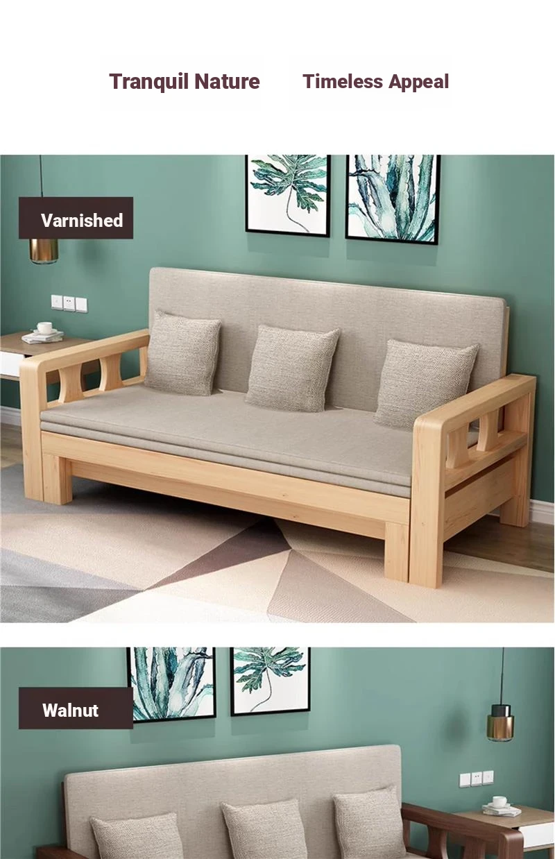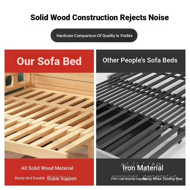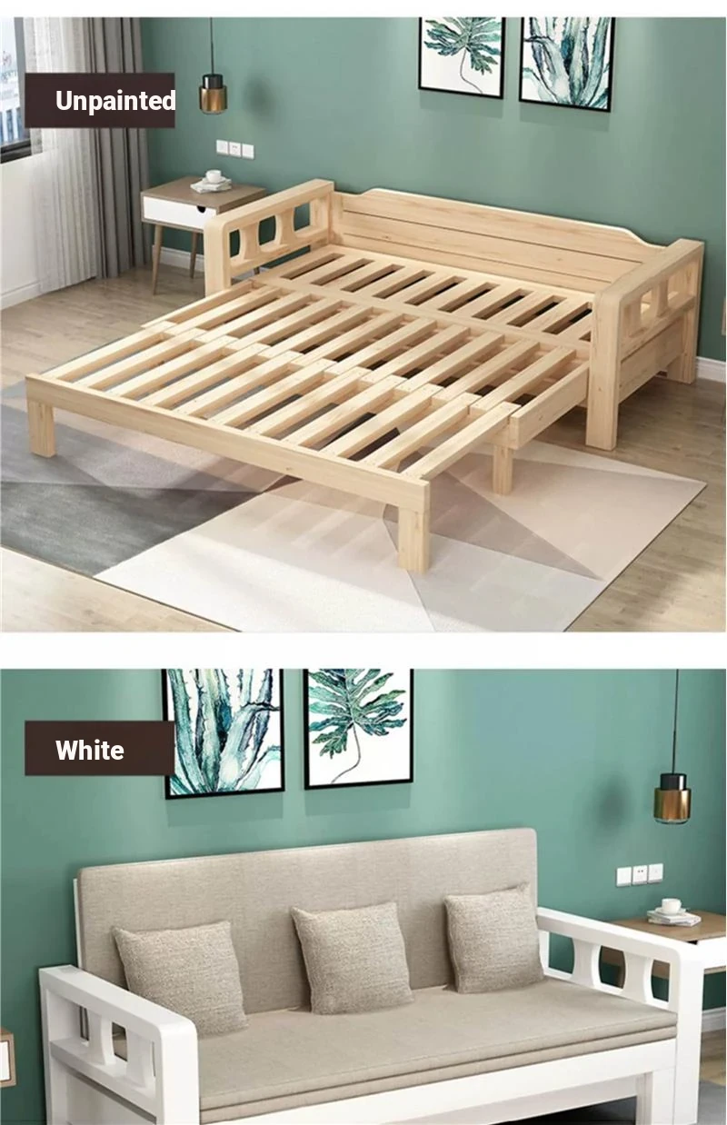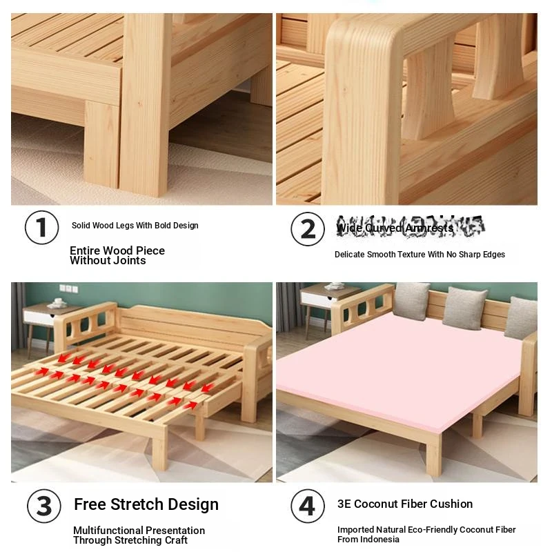 Free Shipping to Hong Kong: Multifunctional Foldable Sofa Bed for Small Living Rooms - Retractable Solid Wood Pull-Out Bed for Sitting and Sleeping