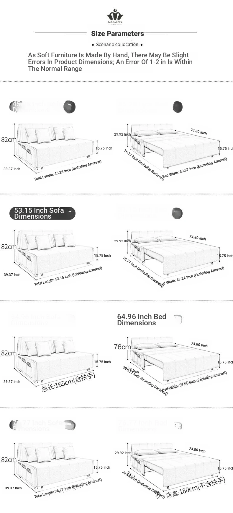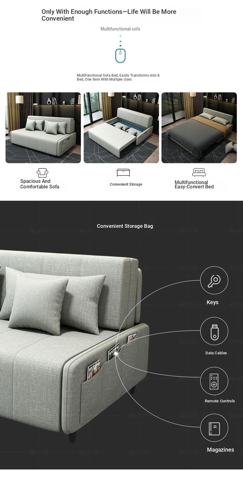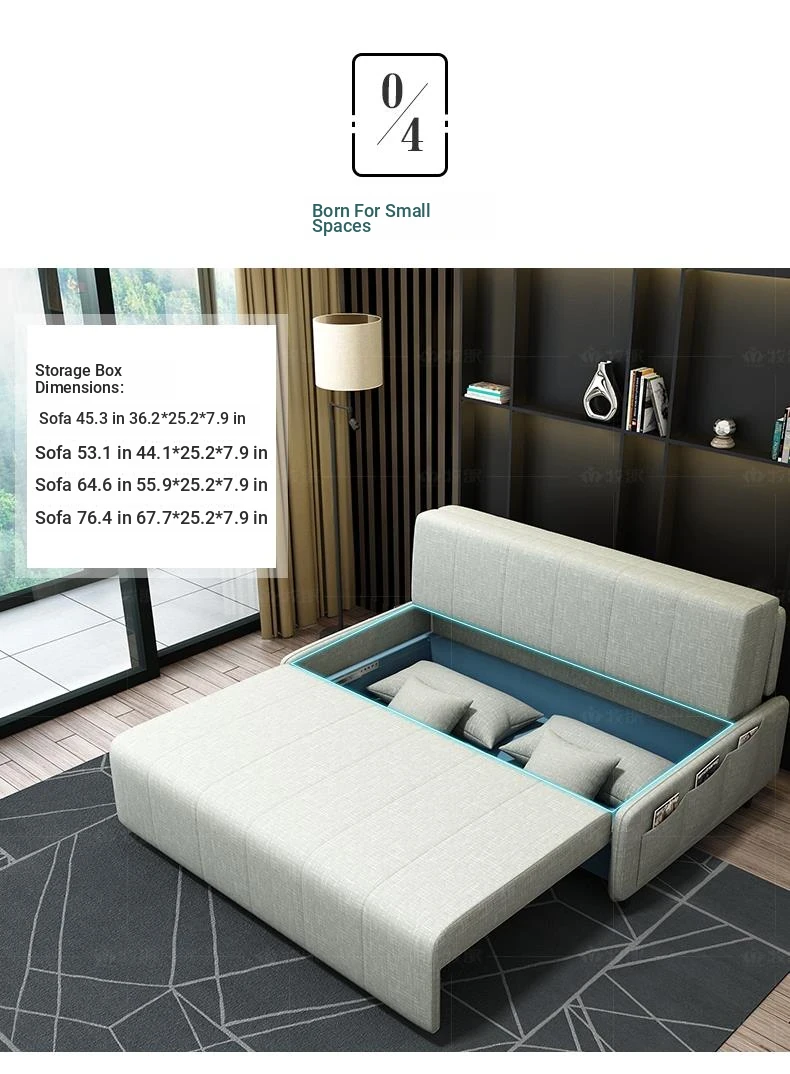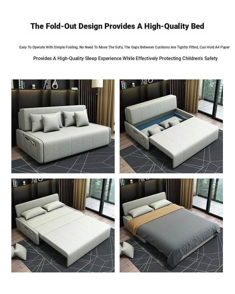 Hong Kong & Macau Free Shipping: Multifunctional Folding Sofa Bed with Storage - Perfect for Small Living Rooms, Accommodates Two to Three People!