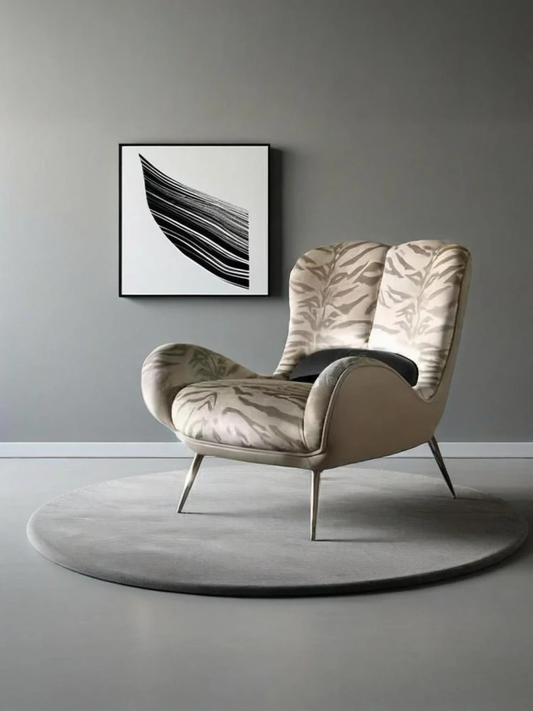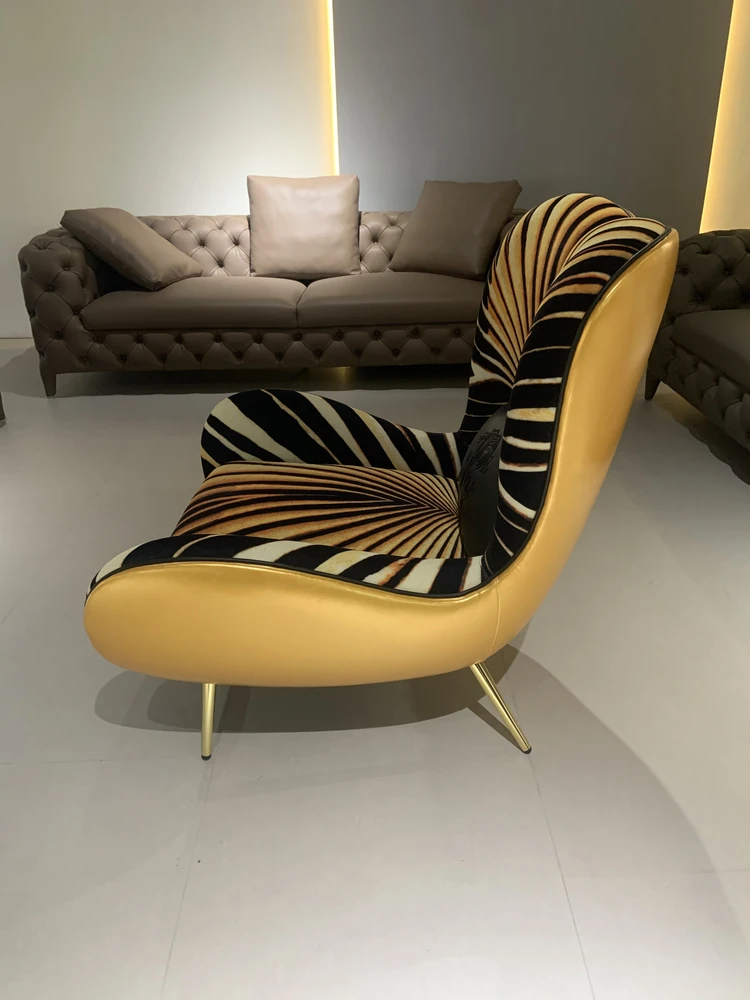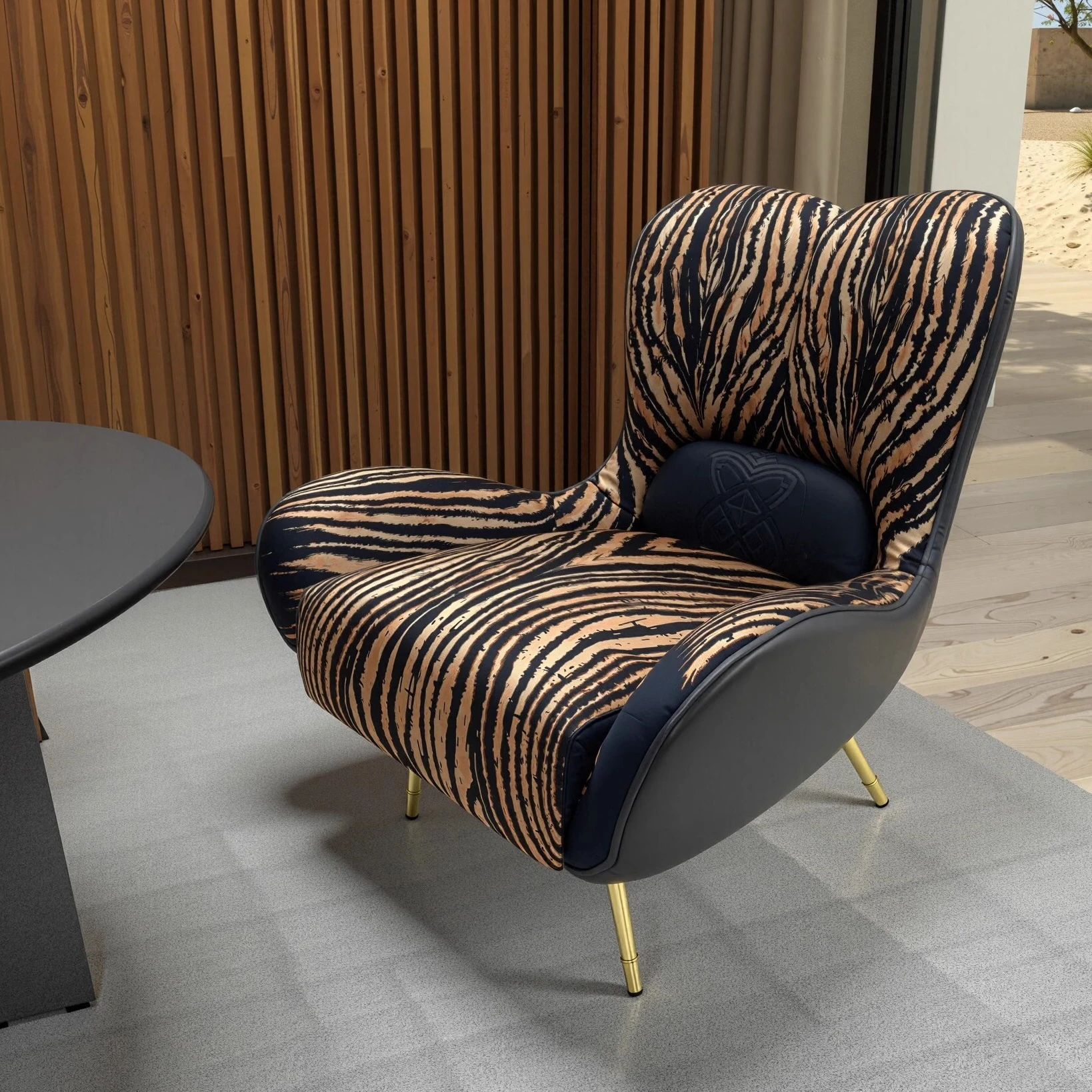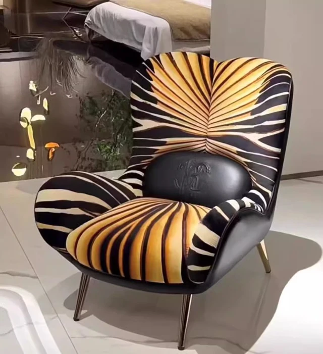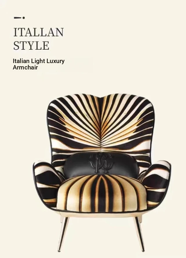 Italian Luxury Designer Tiger Stripe Single Chair - Trendy High-Back Leisure Sofa for Stylish Living Spaces