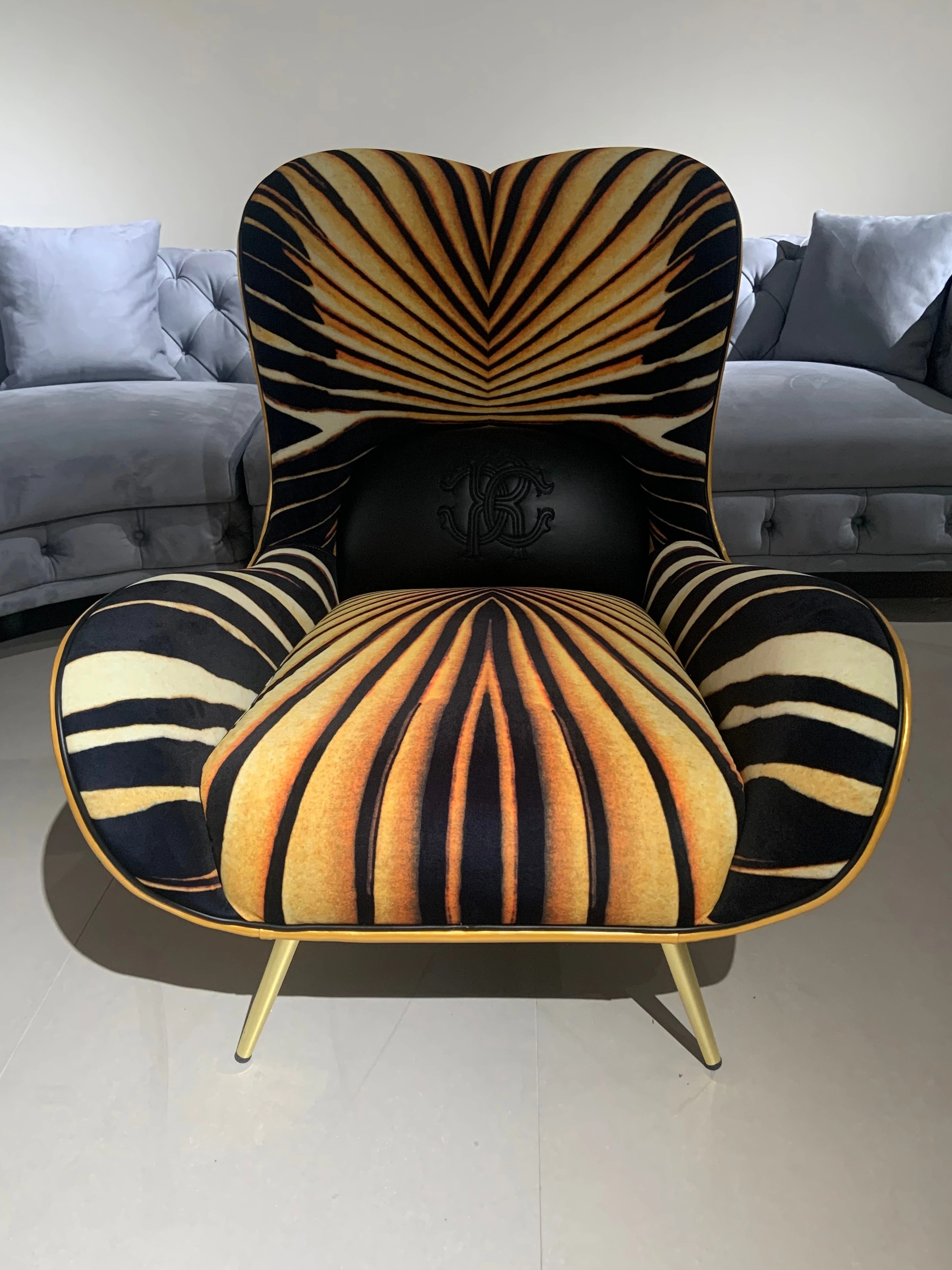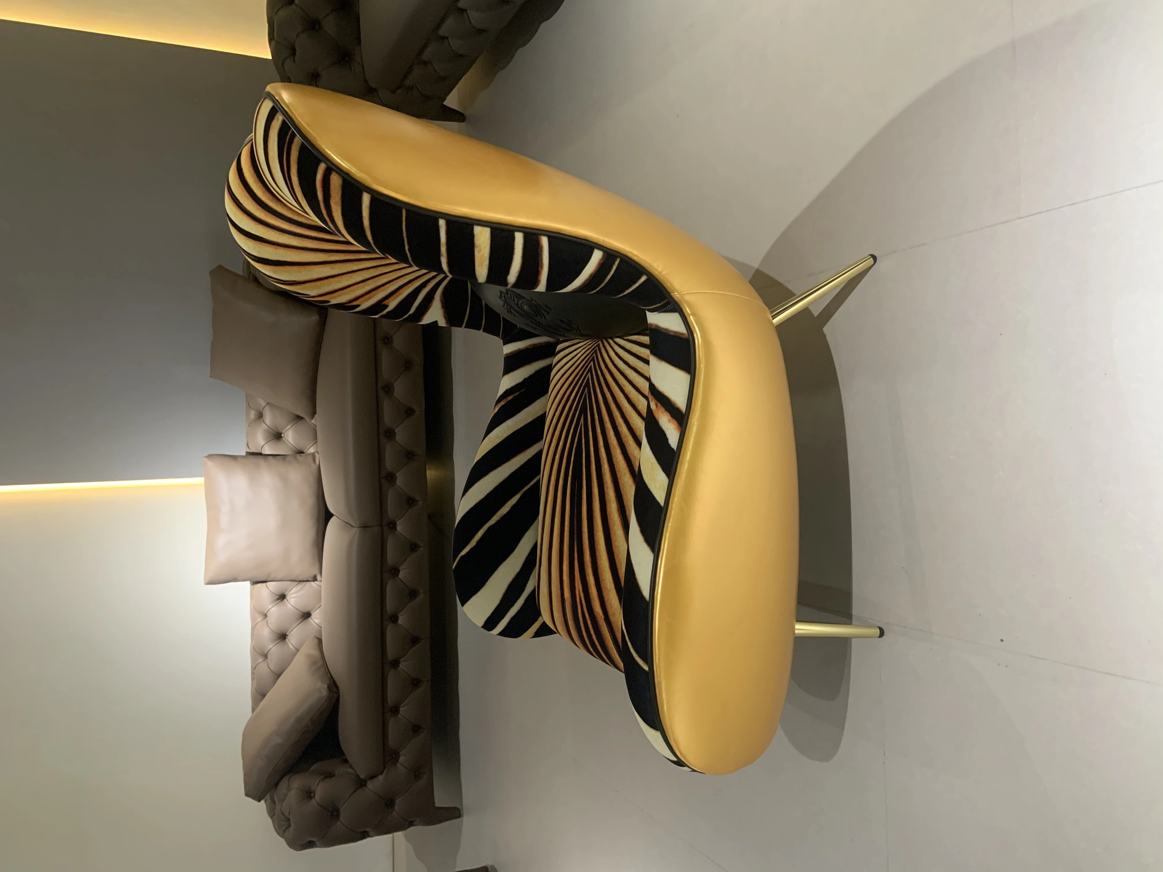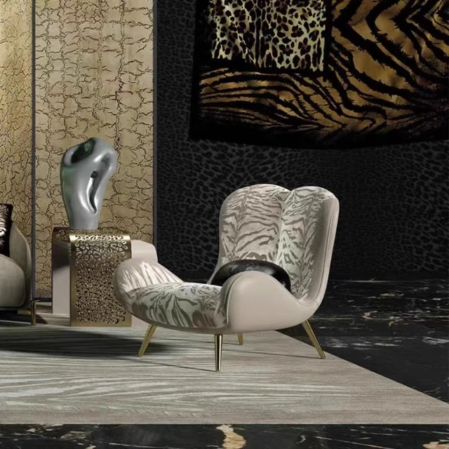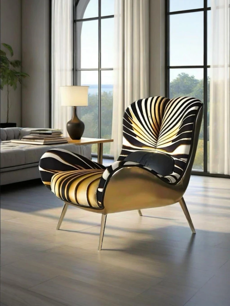 Italian Luxury Designer Tiger Stripe Single Chair - Trendy High-Back Leisure Sofa for Stylish Living Spaces