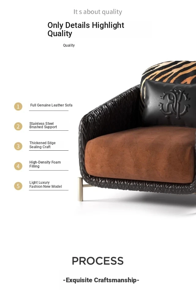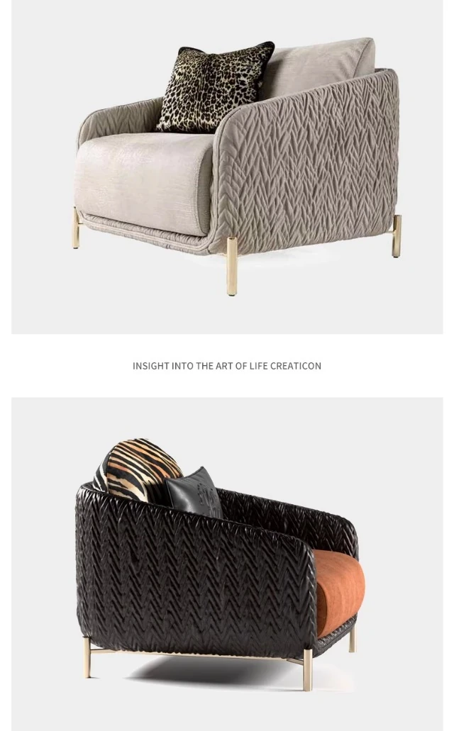 Italian Minimalist Luxury Leisure Chair - Genuine Leather Single Sofa for Villa Living Room, Stylish Armchair for Relaxation