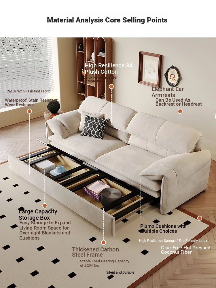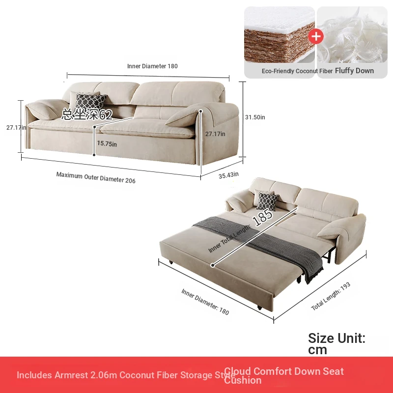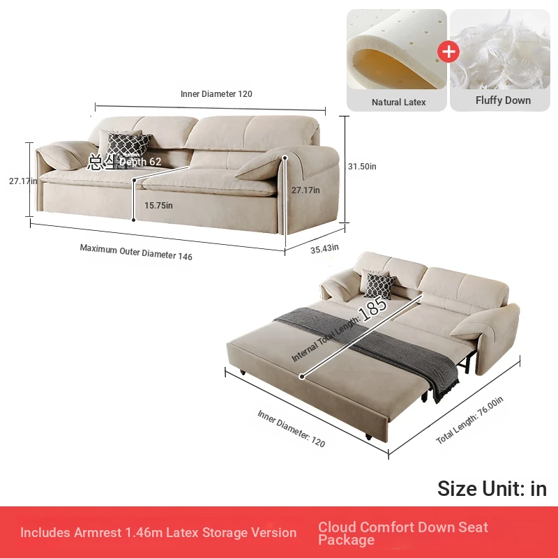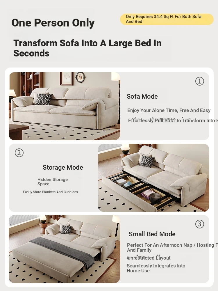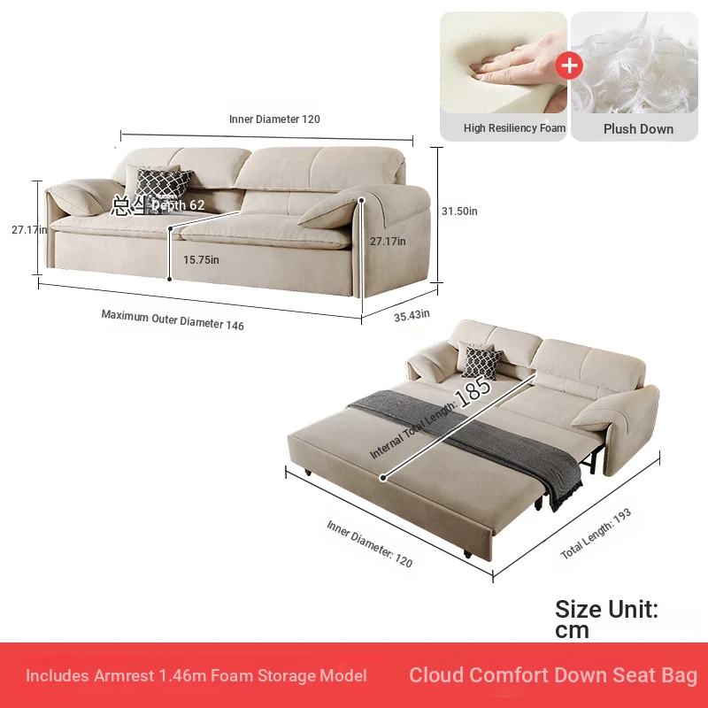Japanese Cloud Sofa Bed - Cozy Milk Velvet Cream-Style Multi-Functional Folding Sofa, Perfect for Sitting and Sleeping, Ideal for Small Spaces!