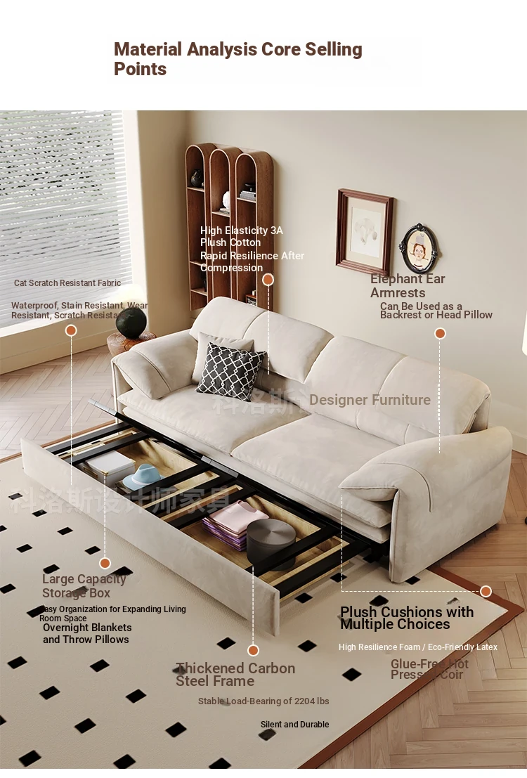 81.10 in sponge storage with armrests(Cloud Plaid Down Seat Bag])