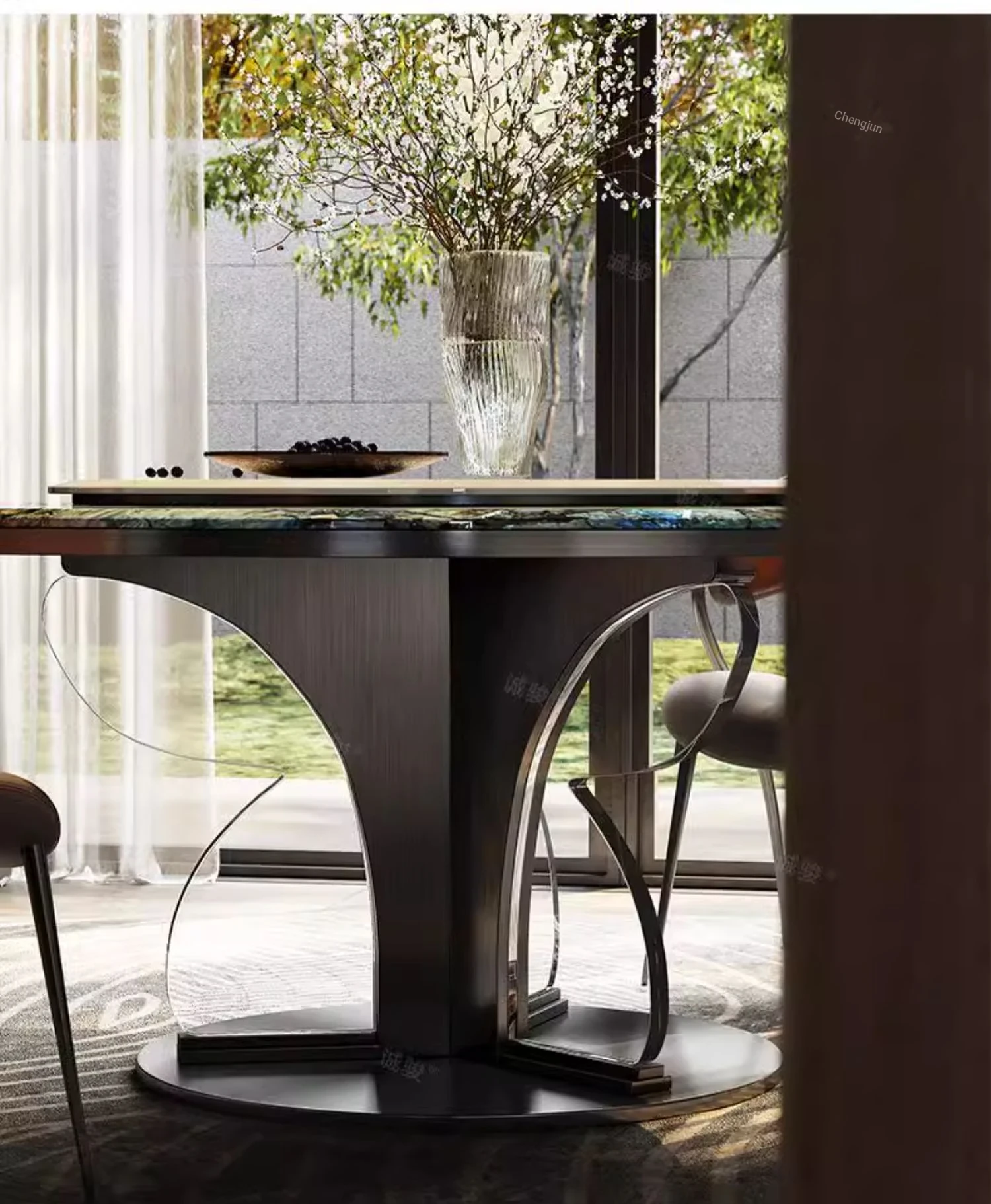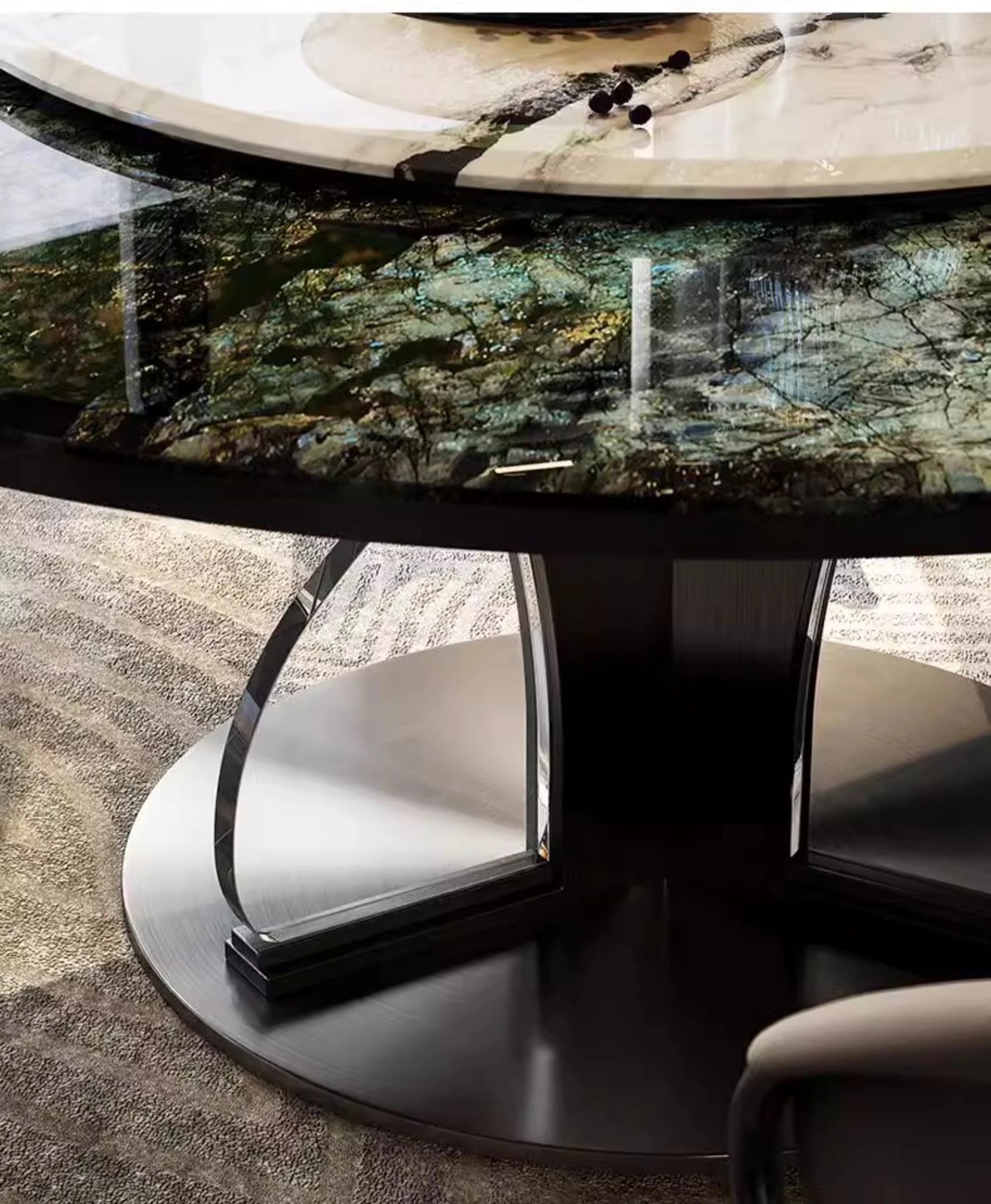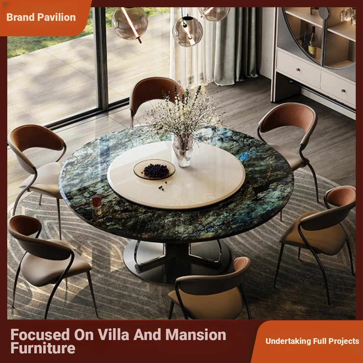 Luxury Blue Jade Marble Dining Table - Italian Light Luxury Villa Design with Natural Marble for Complete Home Décor