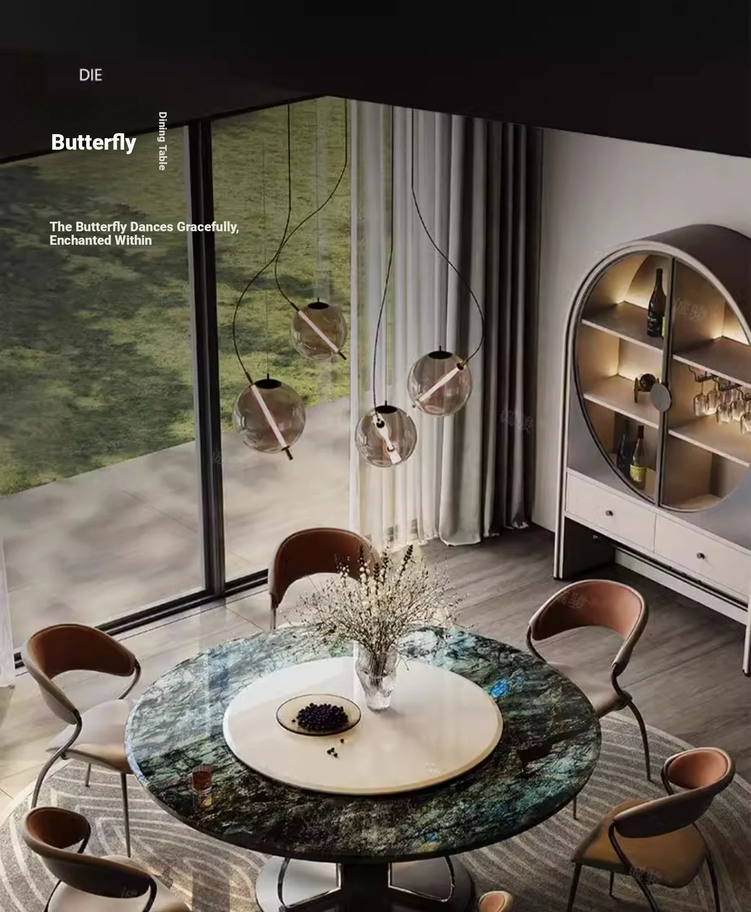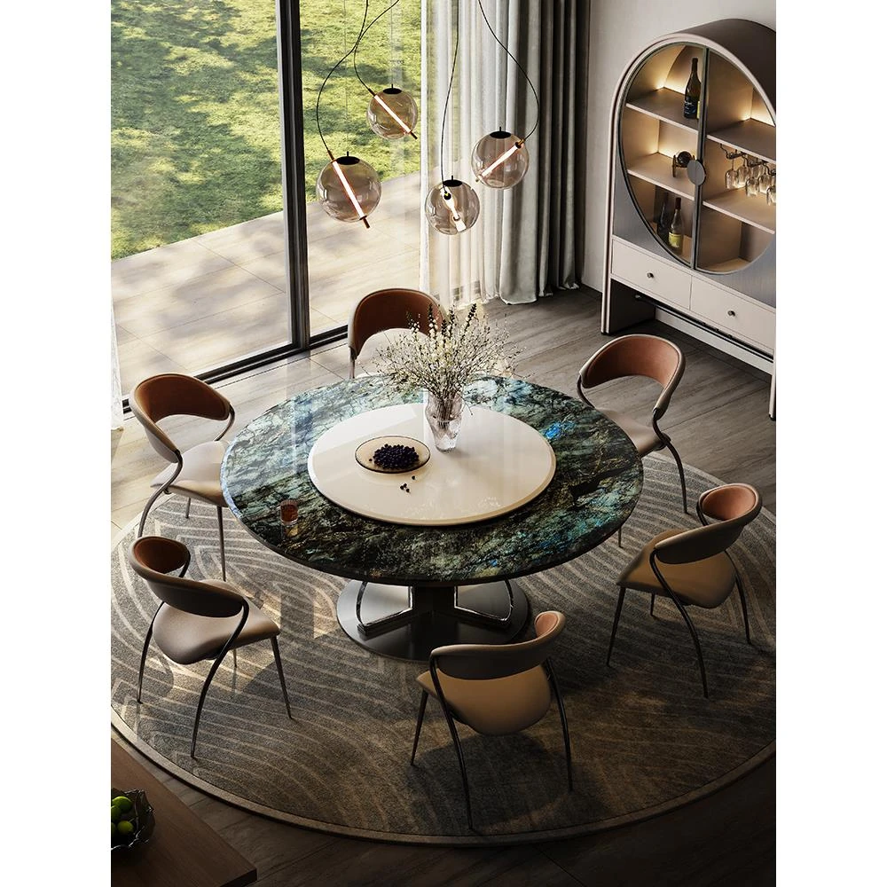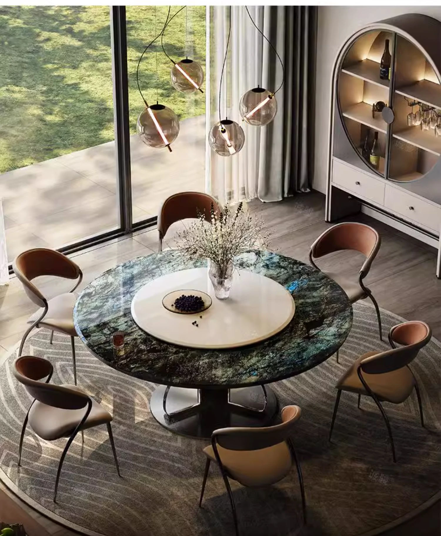 Luxury Blue Jade Marble Dining Table - Italian Light Luxury Villa Design with Natural Marble for Complete Home Décor