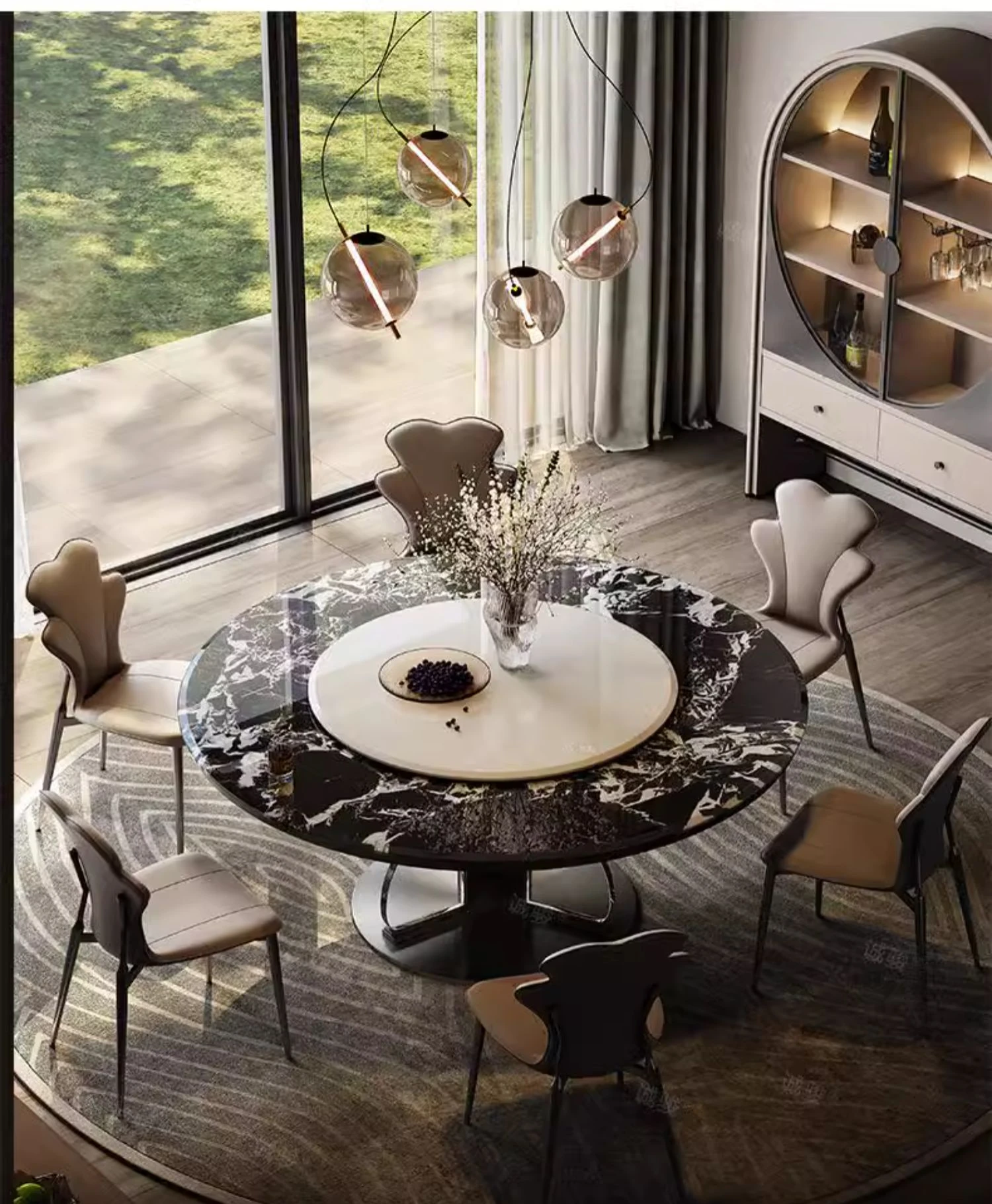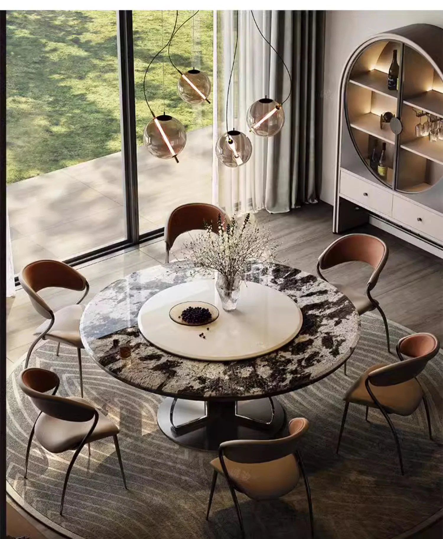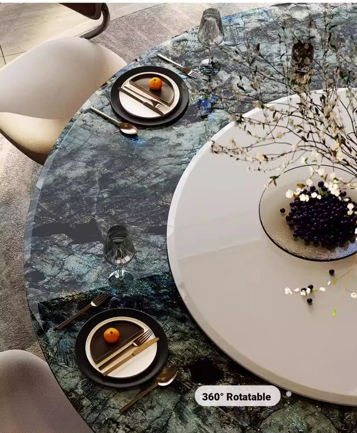 [Snow Mountain Flying Fox/Grey Titanium] 51.18 in Dining Table + Cary Icejade Turntable + Dining Chair * 6