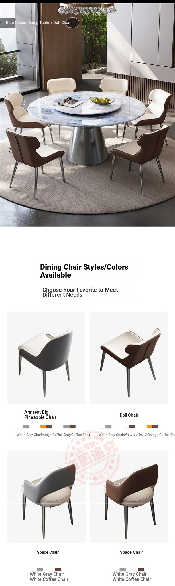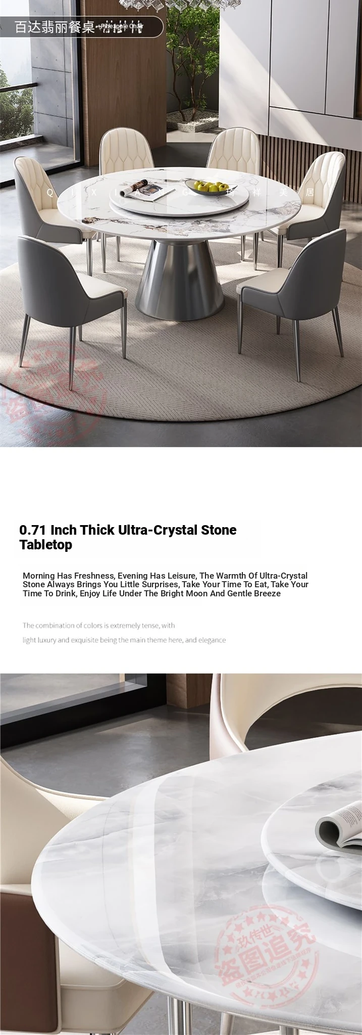 626# Super Crystal Stone Round Table +10 Cat Scratch Skin Pineapple Chair
