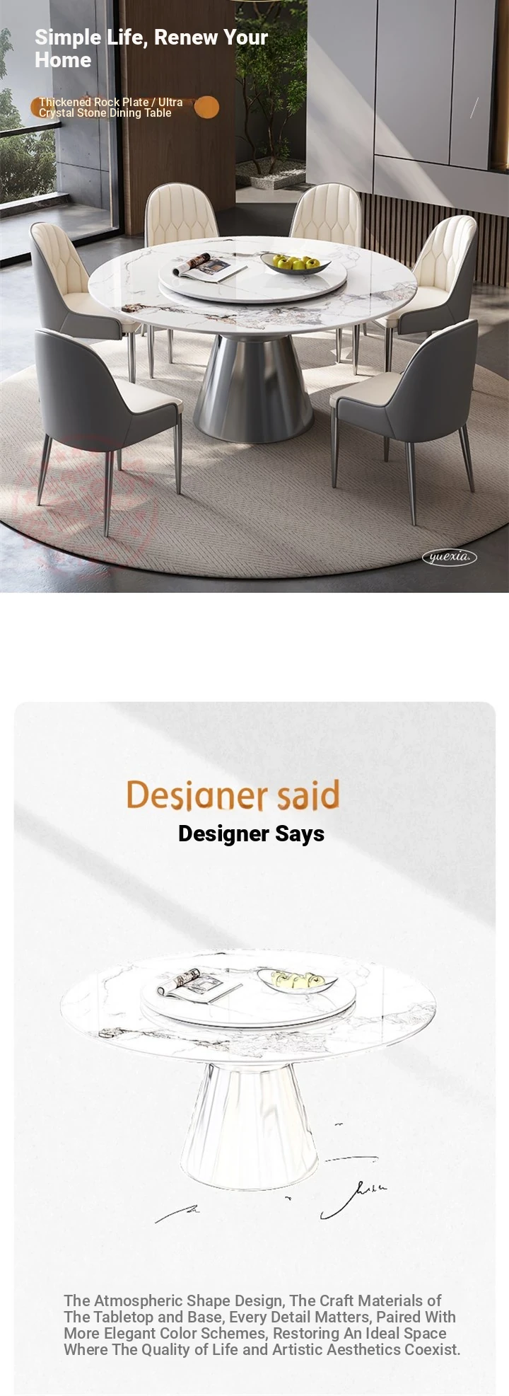 Luxury Modern Minimalist Microcrystalline Stone Dining Table - Natural Marble Round Table for Small Spaces, Perfect for Home Use