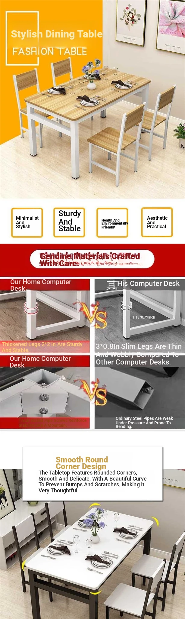 Modern Minimalist Rectangular Dining Table Set for Small Spaces - Seats 4-6, Perfect for Home and Quick Service Restaurants