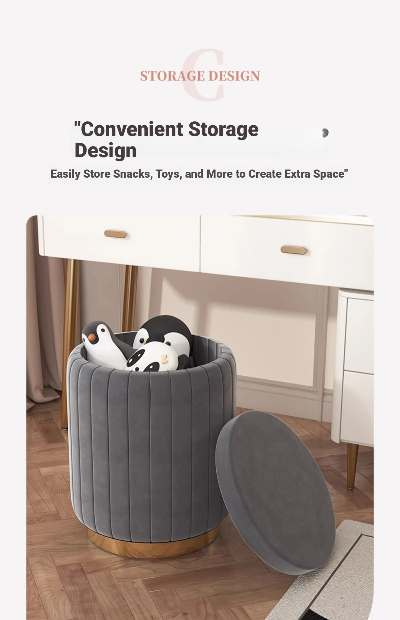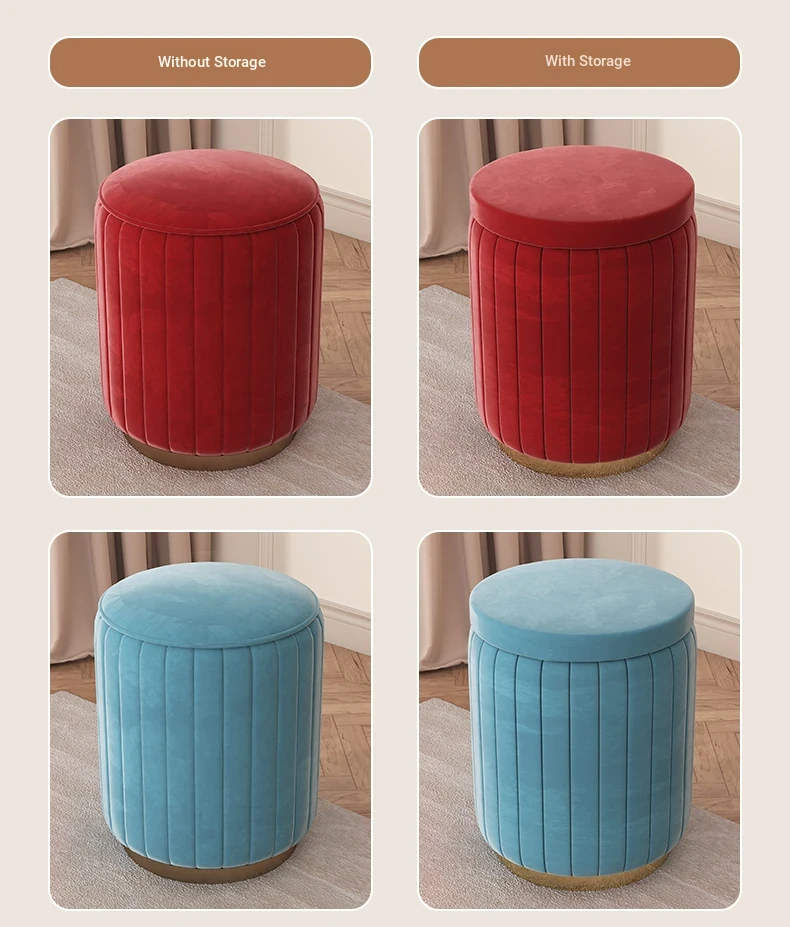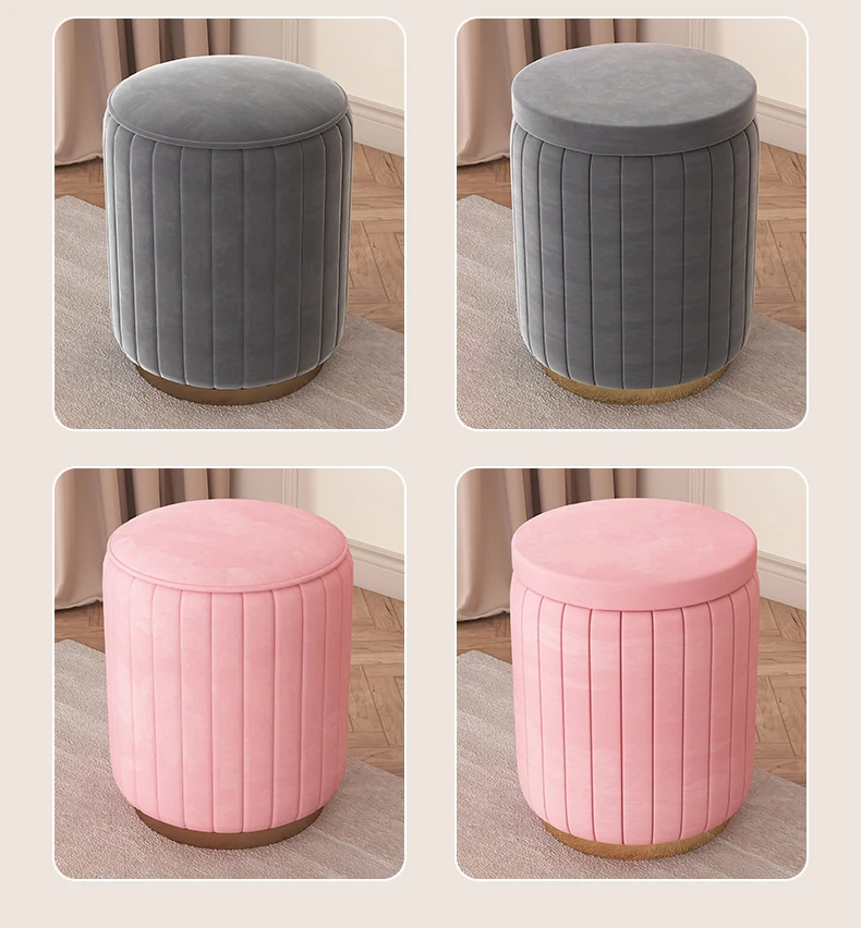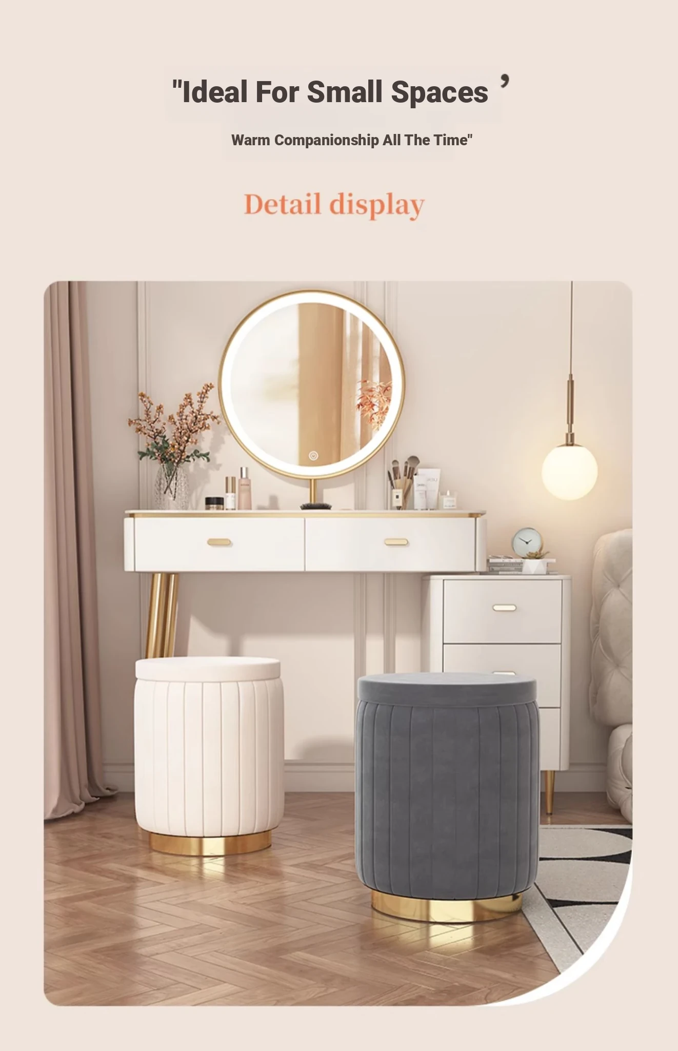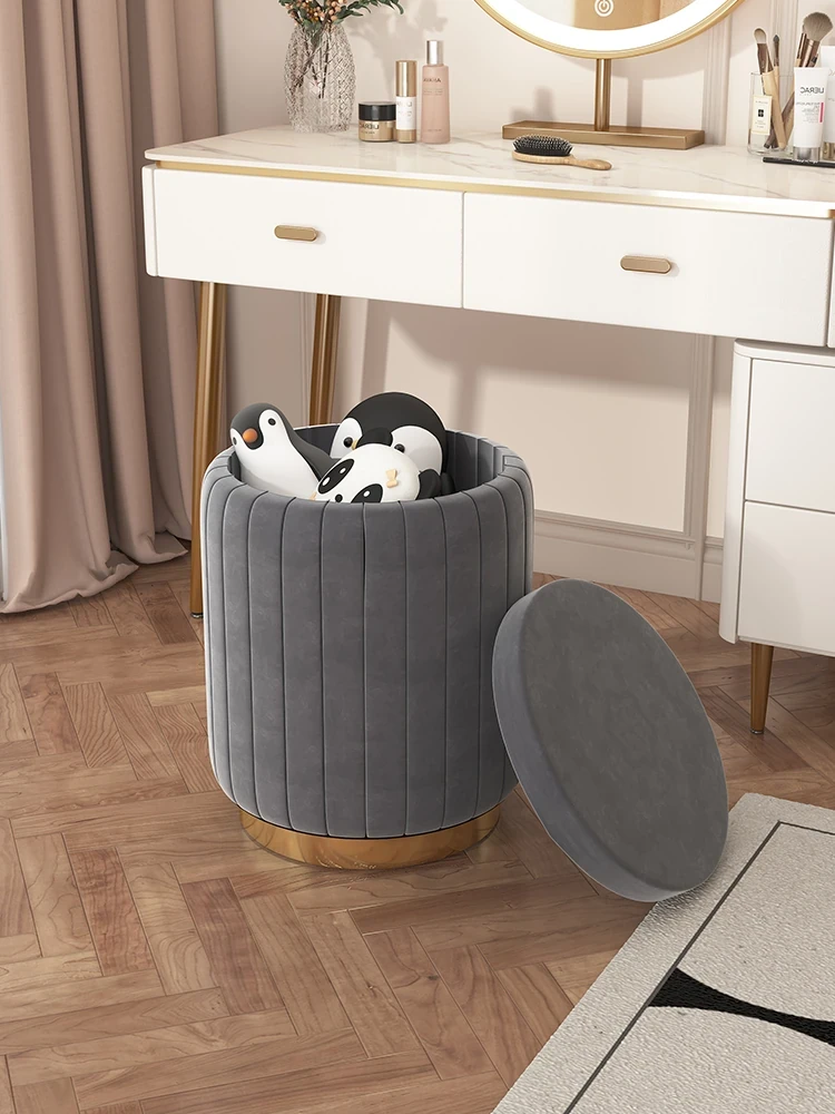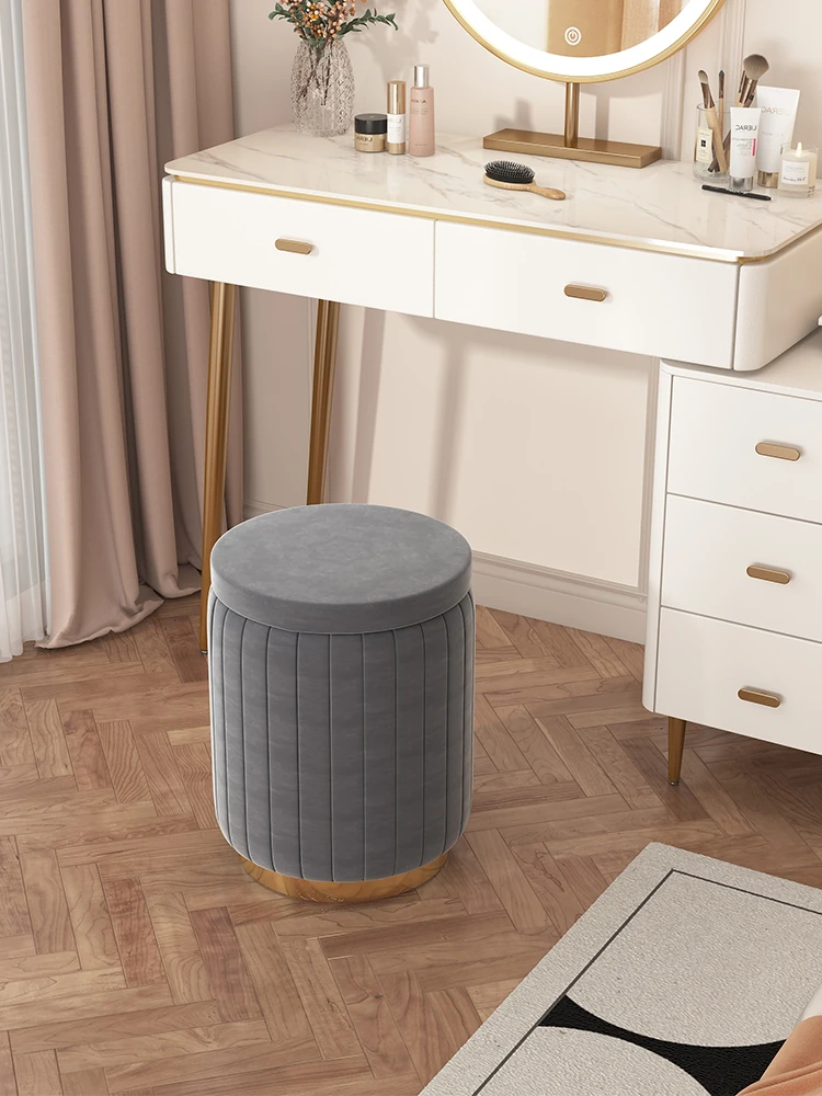 Modern Minimalist Round Makeup Stool - Trendy Storage Chair for Bedroom, Perfect for Vanity Tables and Small Spaces, Stylish and Functional Design