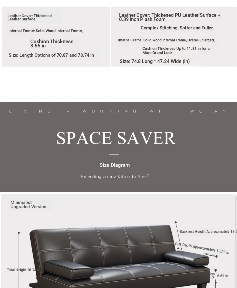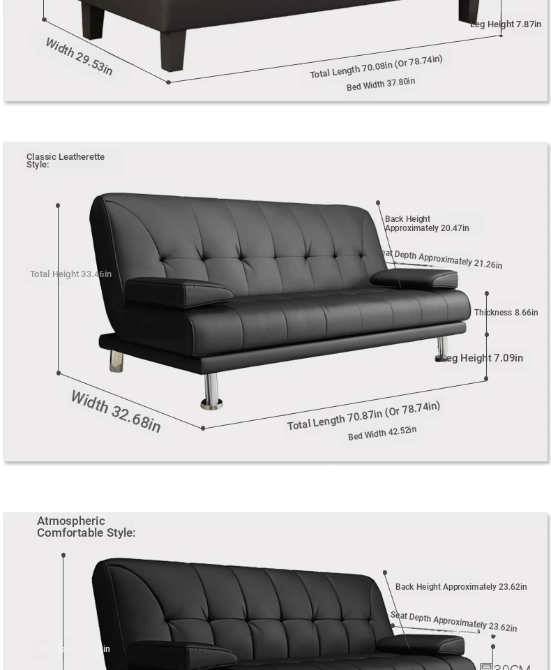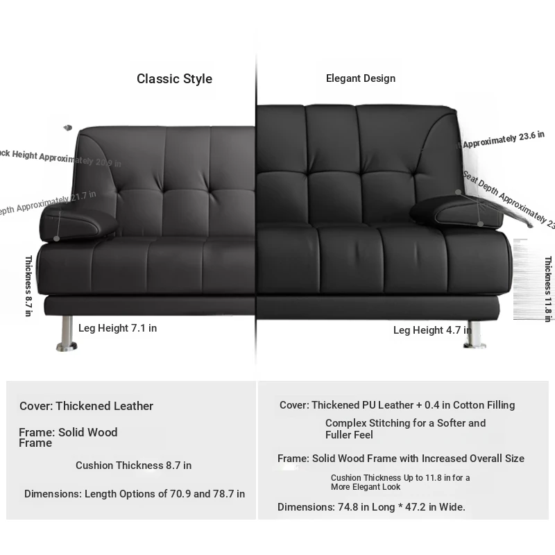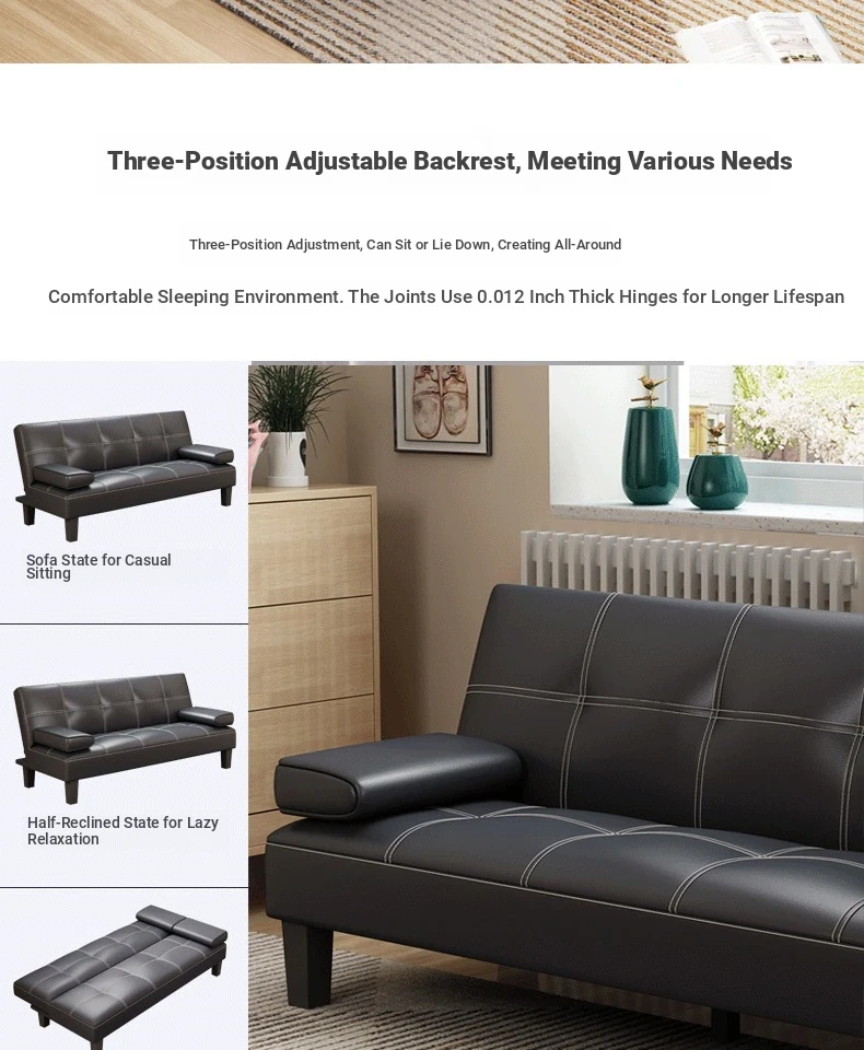 Modern Minimalist Solid Wood Foldable Lazy Sofa Bed for Small Spaces - Versatile Single & Double Options, Ideal for Easy Living, 1.8m