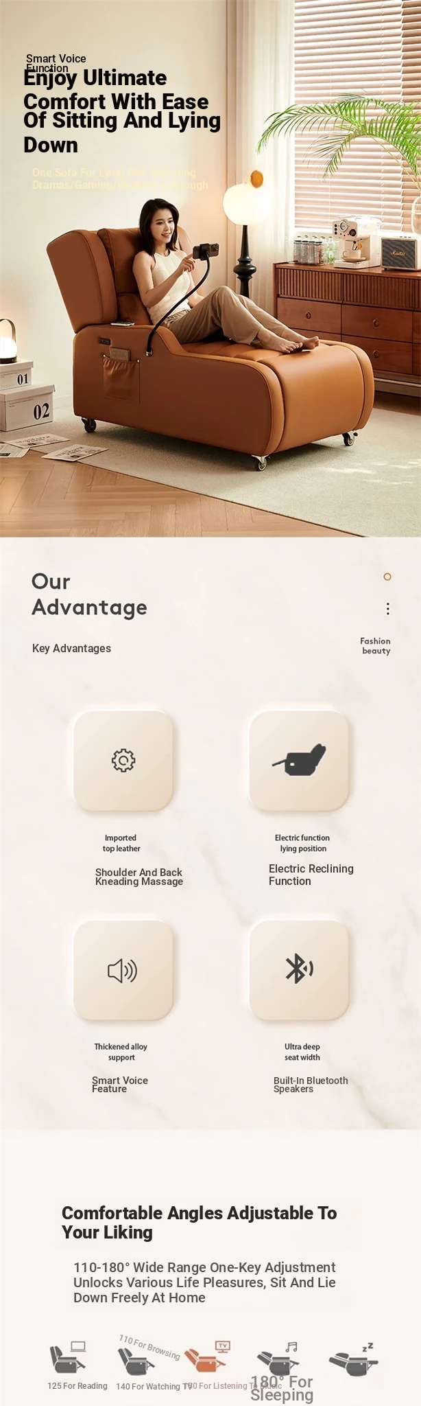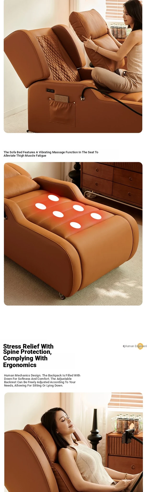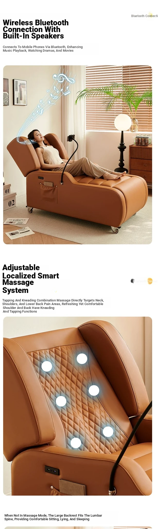 Multi-Functional Electric Massage Sofa Bed - Convertible Chaise Lounge Chair for Small Spaces, Ideal for Home Use and Balconies, Comfortable and Stylish Design