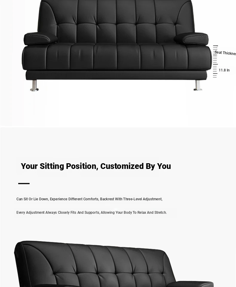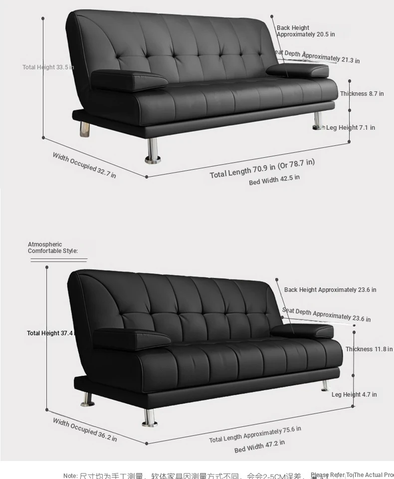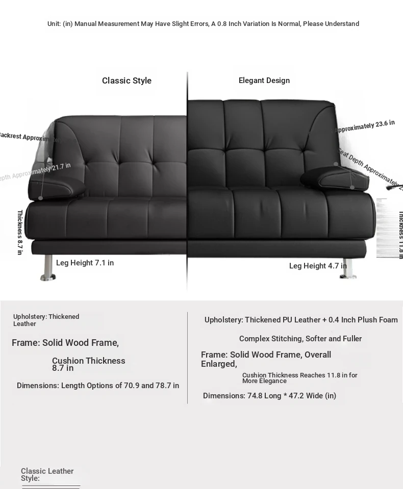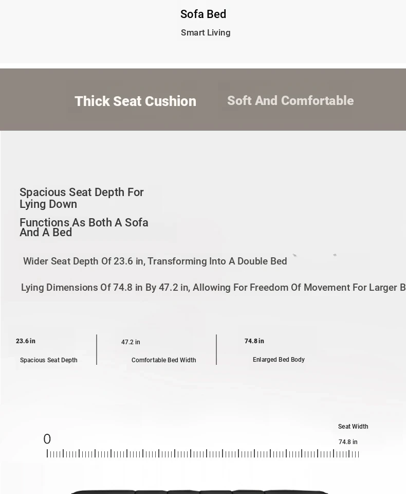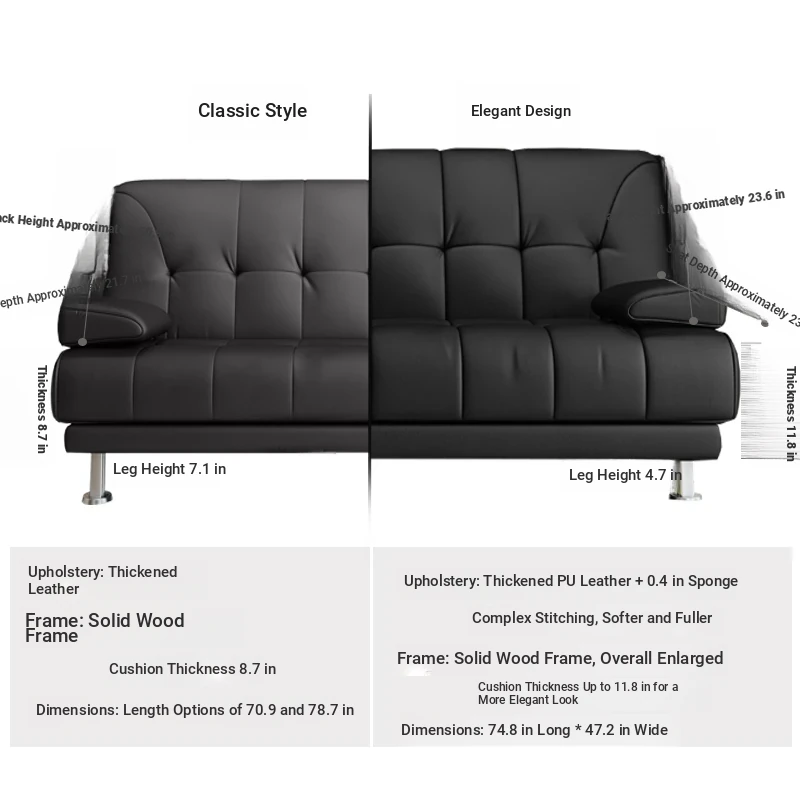 Multi-Functional Minimalist Solid Wood Sofa Bed - Foldable, Space-Saving Design for Small Living Rooms, Perfect for Singles or Couples (1.8m)