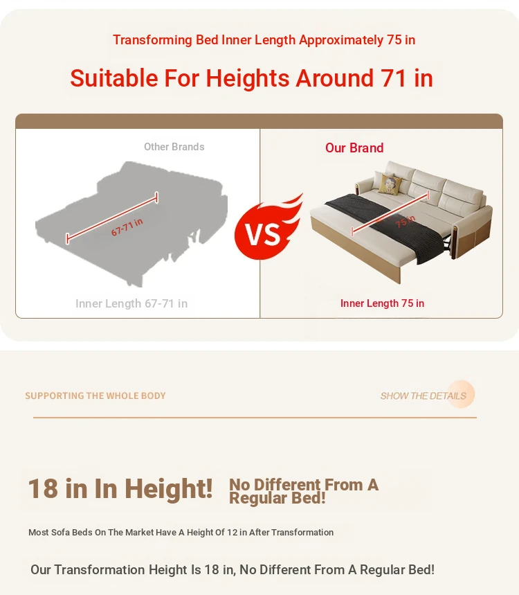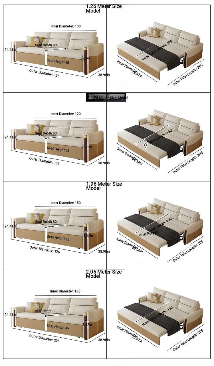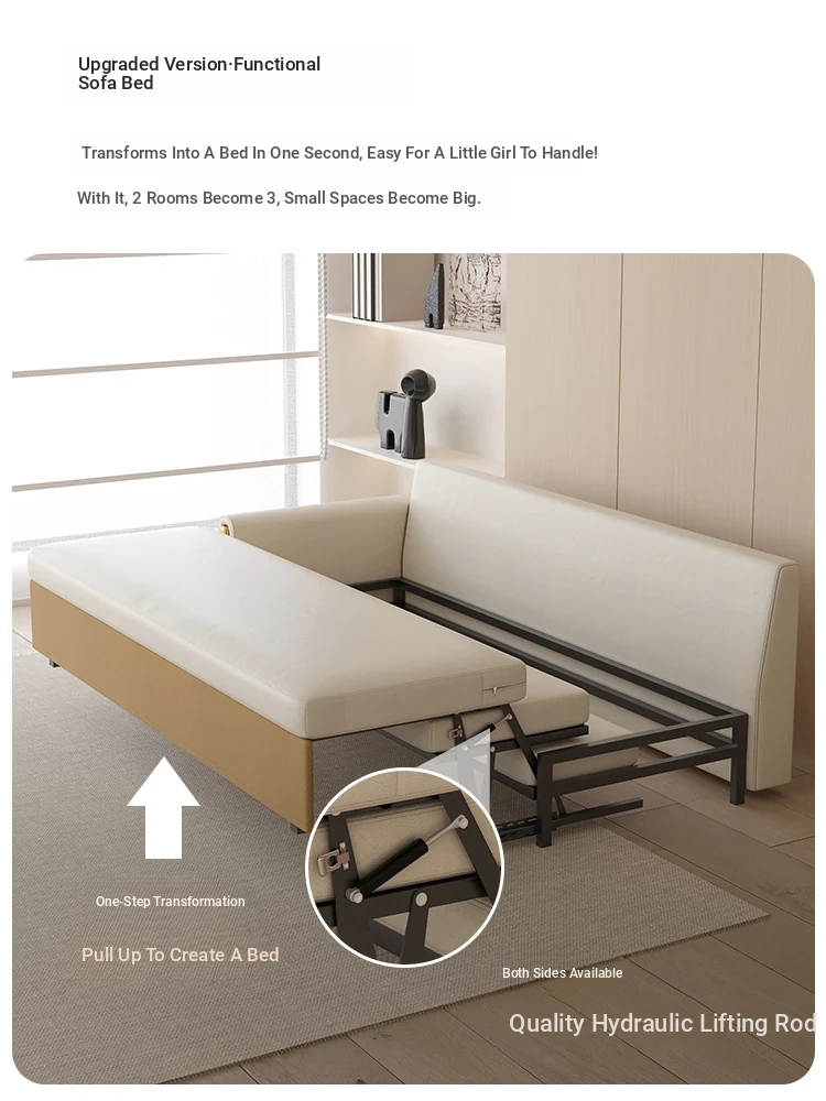 Multifunctional Sofa Bed for Small Apartments - Stylish and Space-Saving Folding Bed for Living Rooms in Hong Kong, Designed for Comfort and Convenience, Perfect for Couples, Made in Foshan, Guangdong.