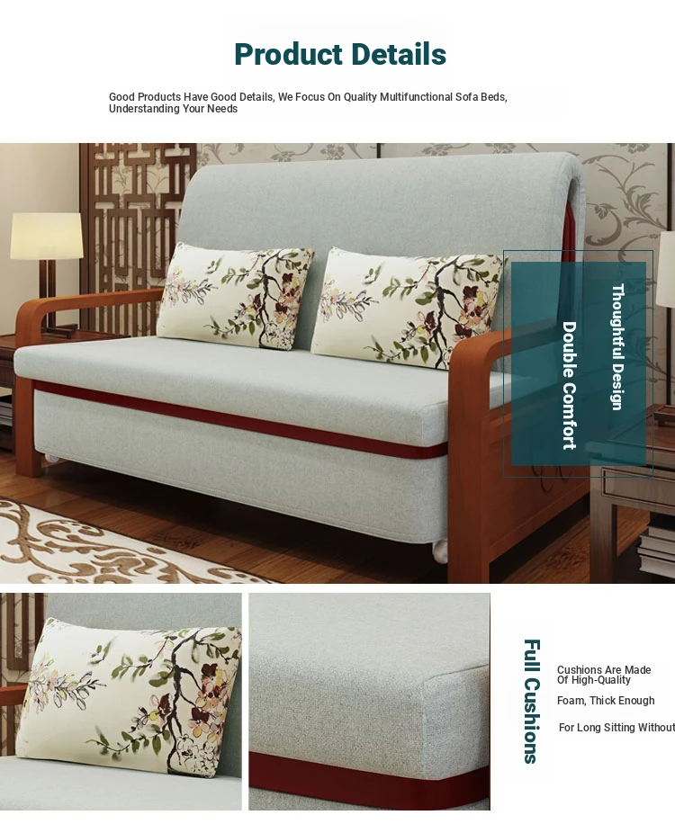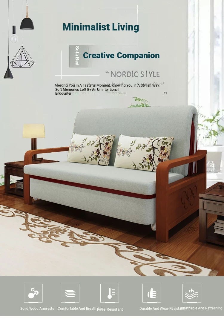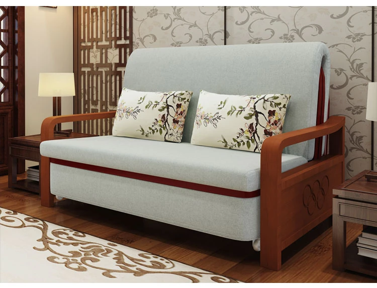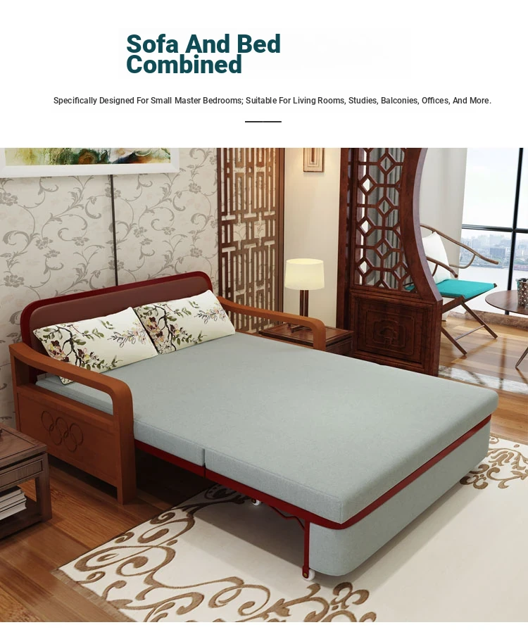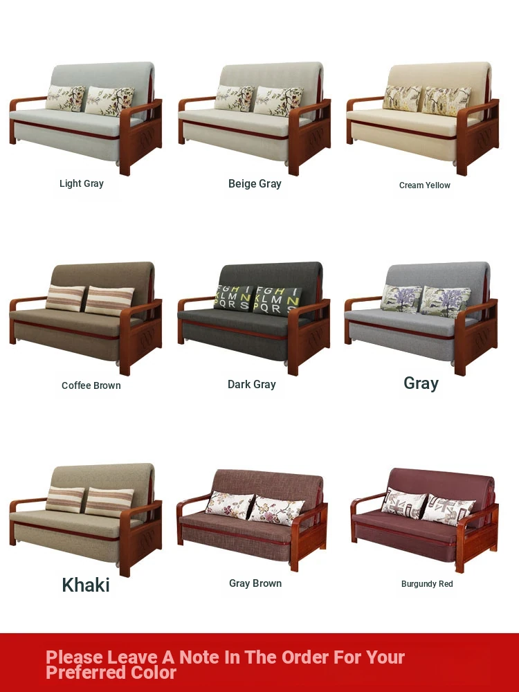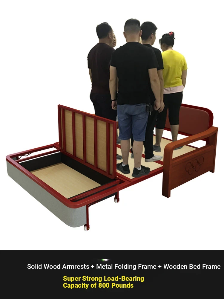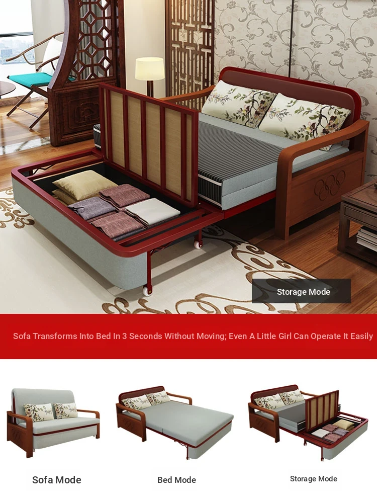 Multifunctional Solid Wood Sofa Bed - Space-Saving 1.5m Double Folding Sofa for Sitting and Sleeping, Ideal for Single Rooms with Storage Option