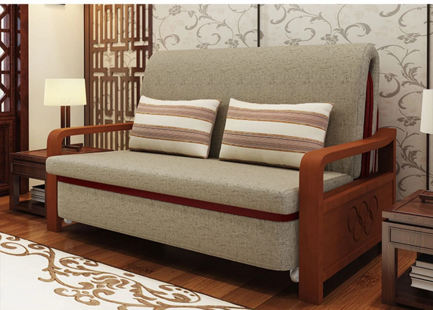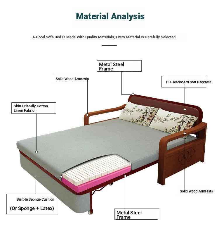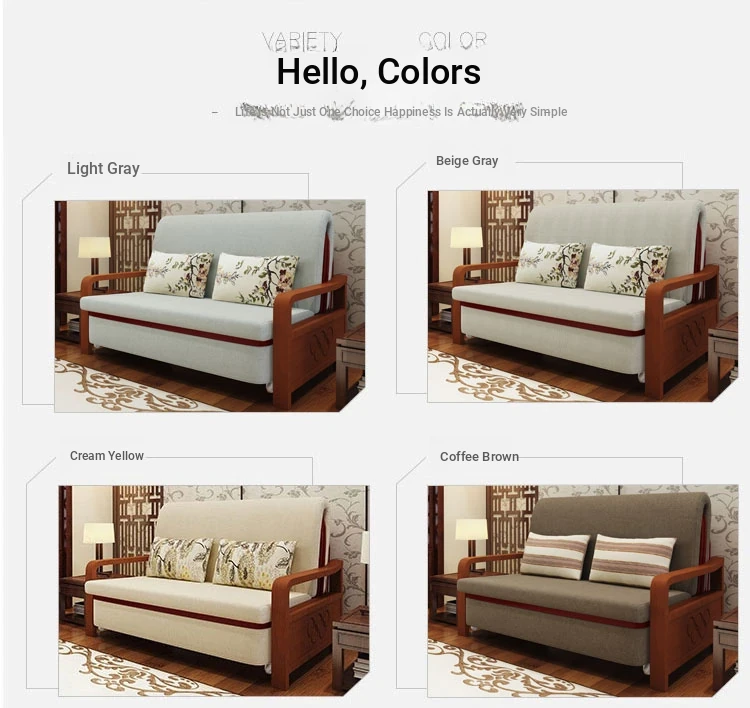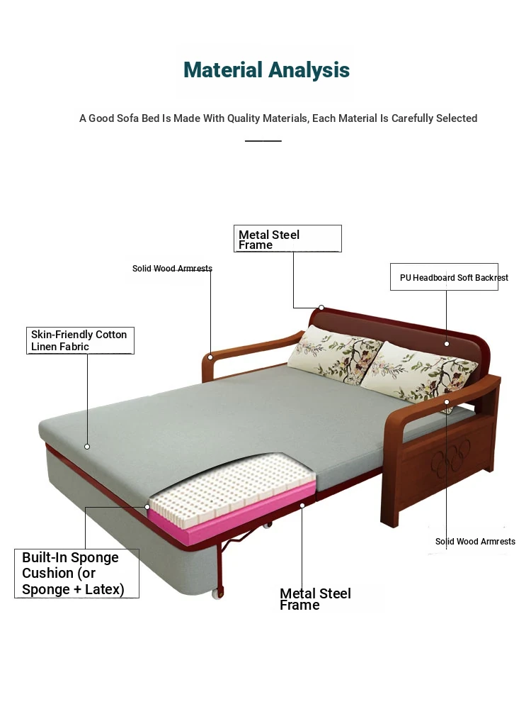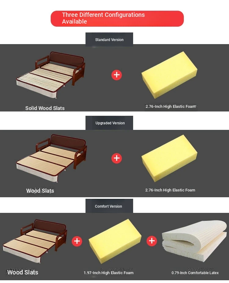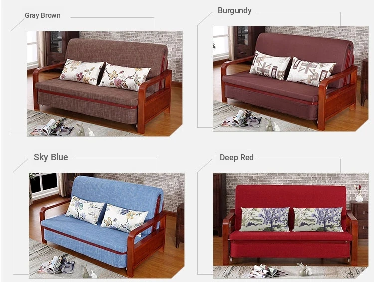 Multifunctional Solid Wood Sofa Bed - Space-Saving 1.5m Double Folding Sofa for Sitting and Sleeping, Ideal for Single Rooms with Storage Option