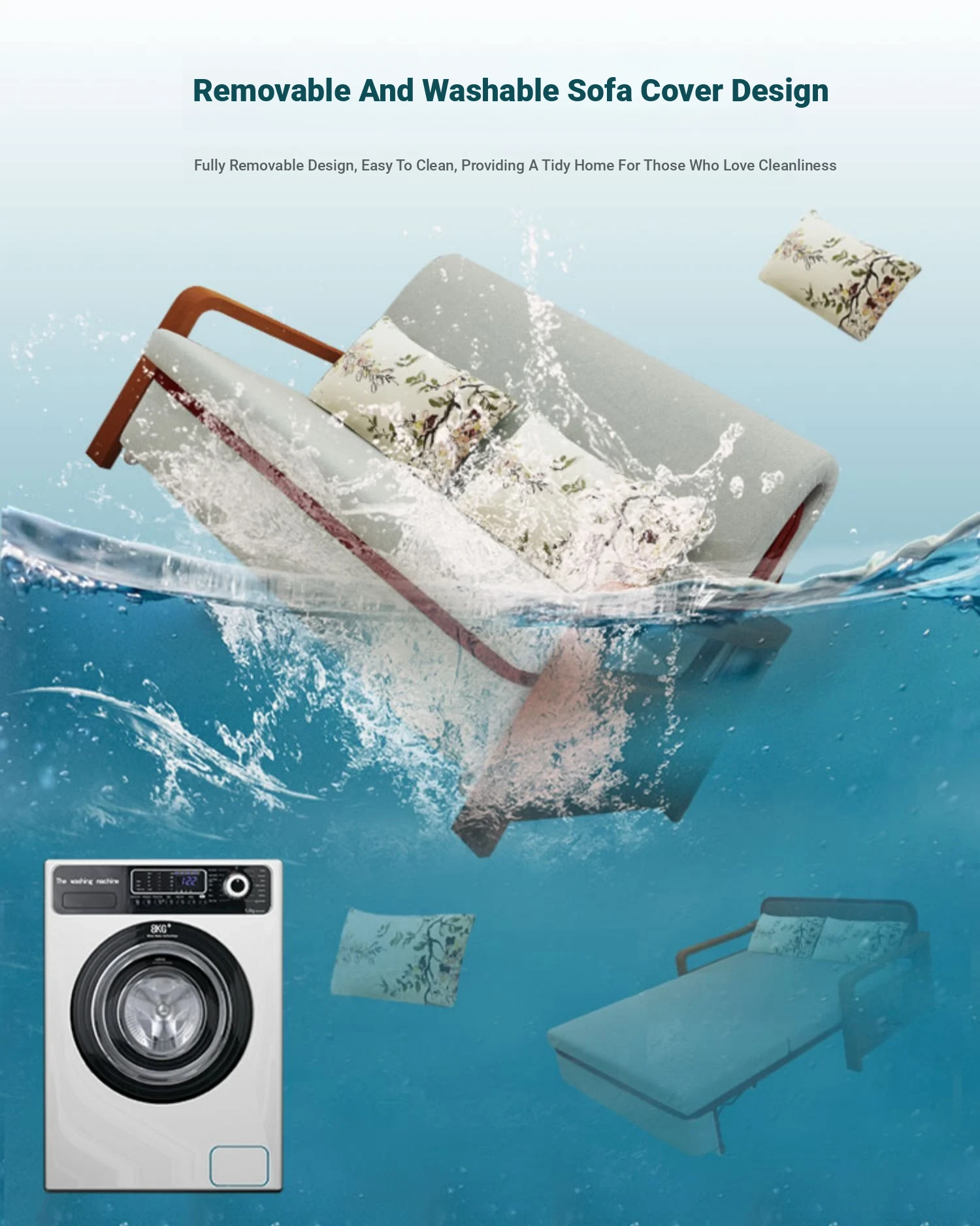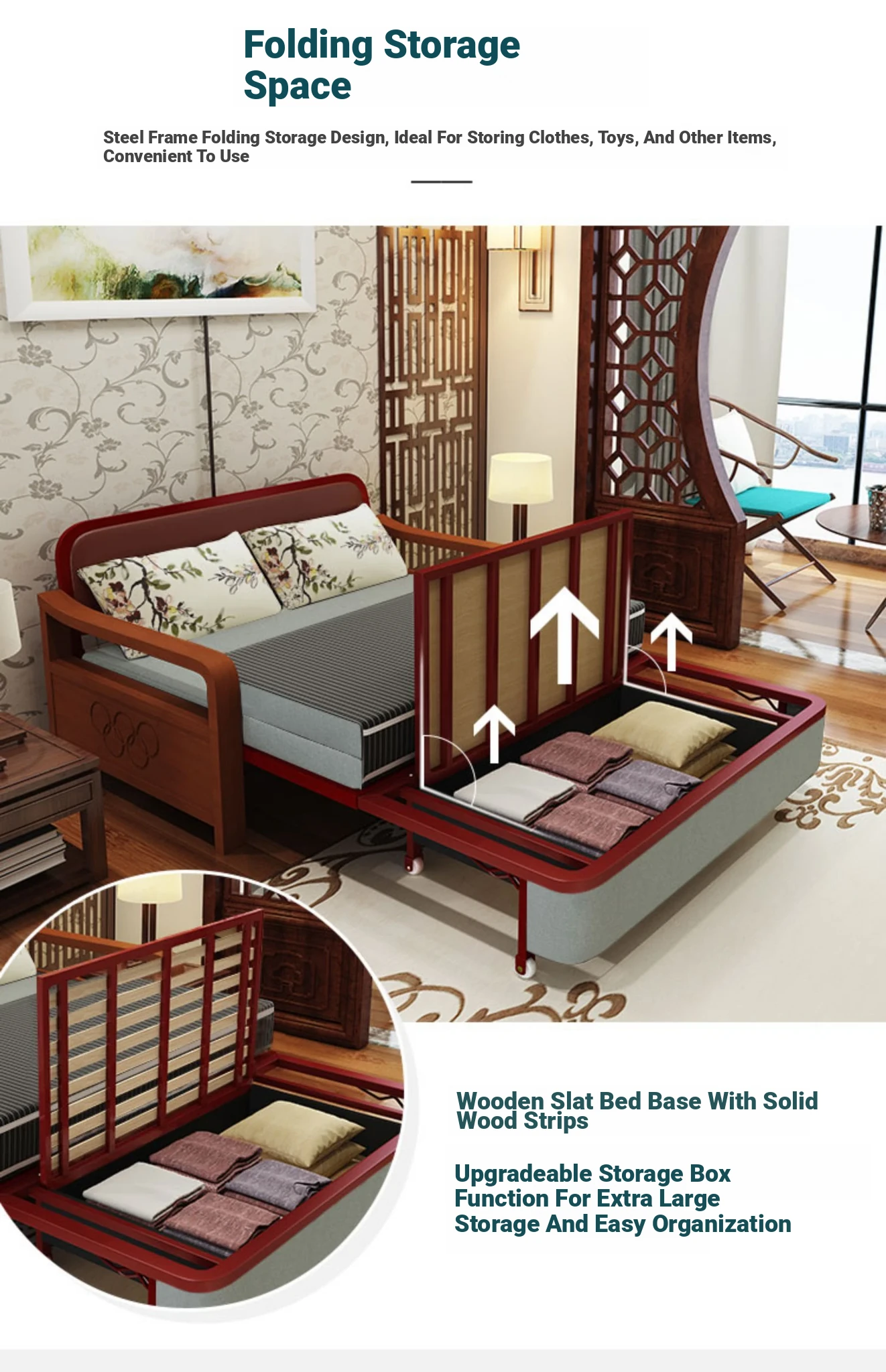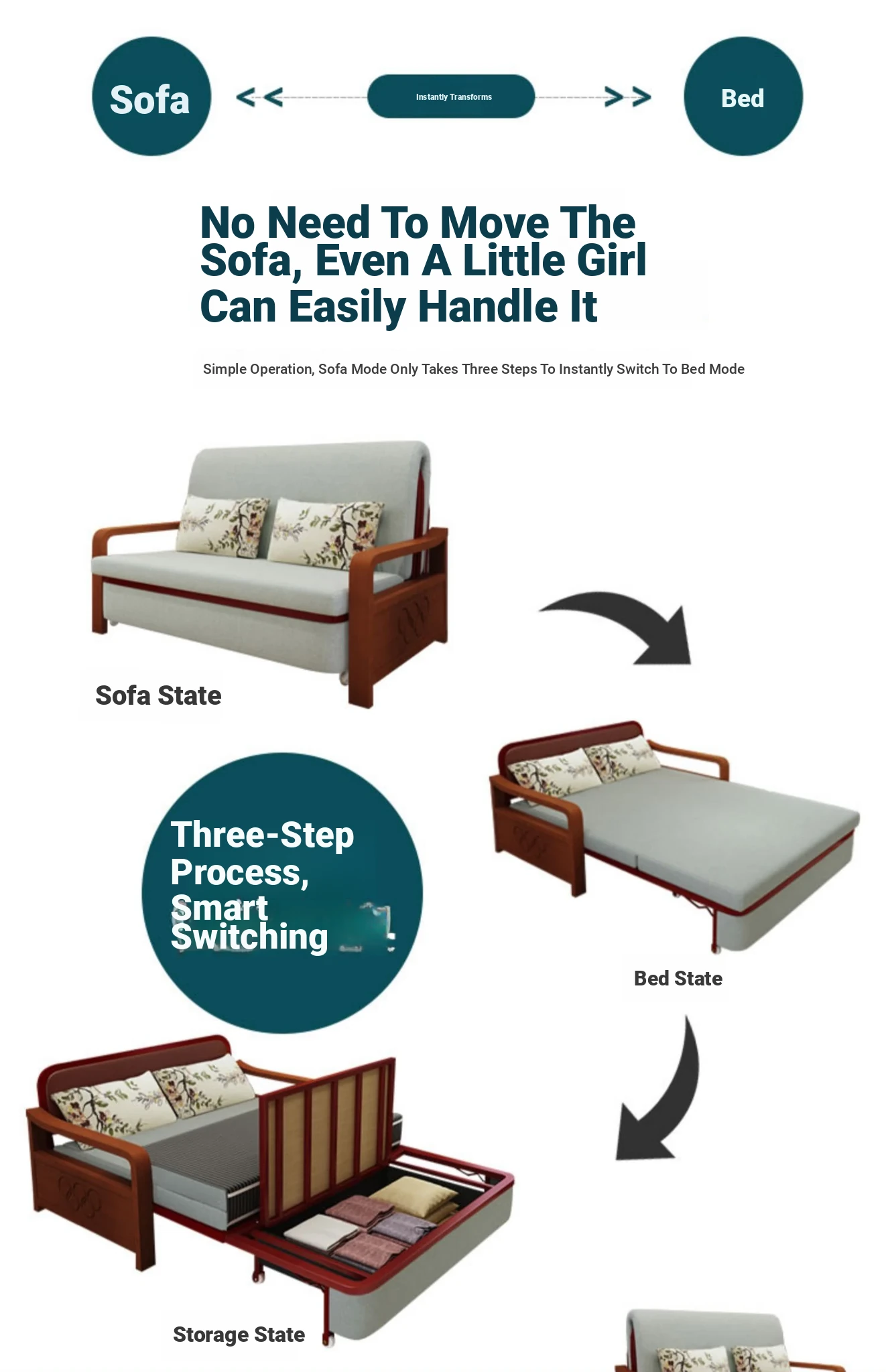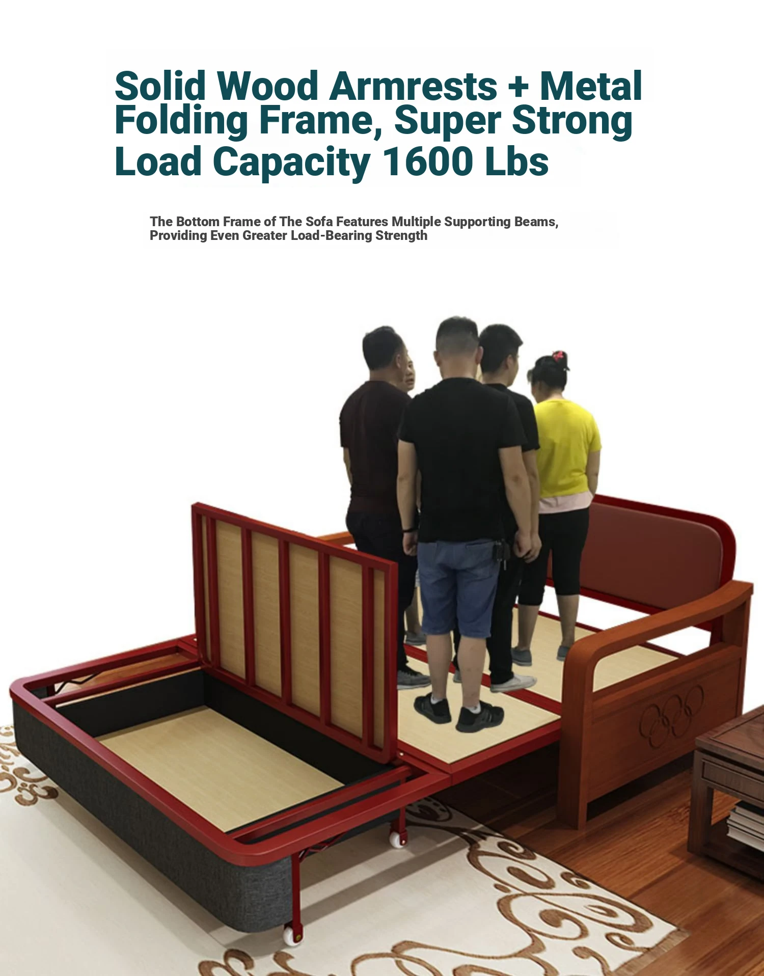 Multifunctional Solid Wood Sofa Bed - Space-Saving 1.5m Double Folding Sofa for Sitting and Sleeping, Ideal for Single Rooms with Storage Option