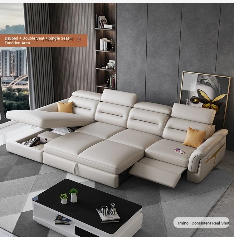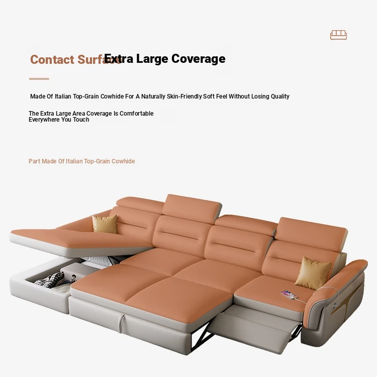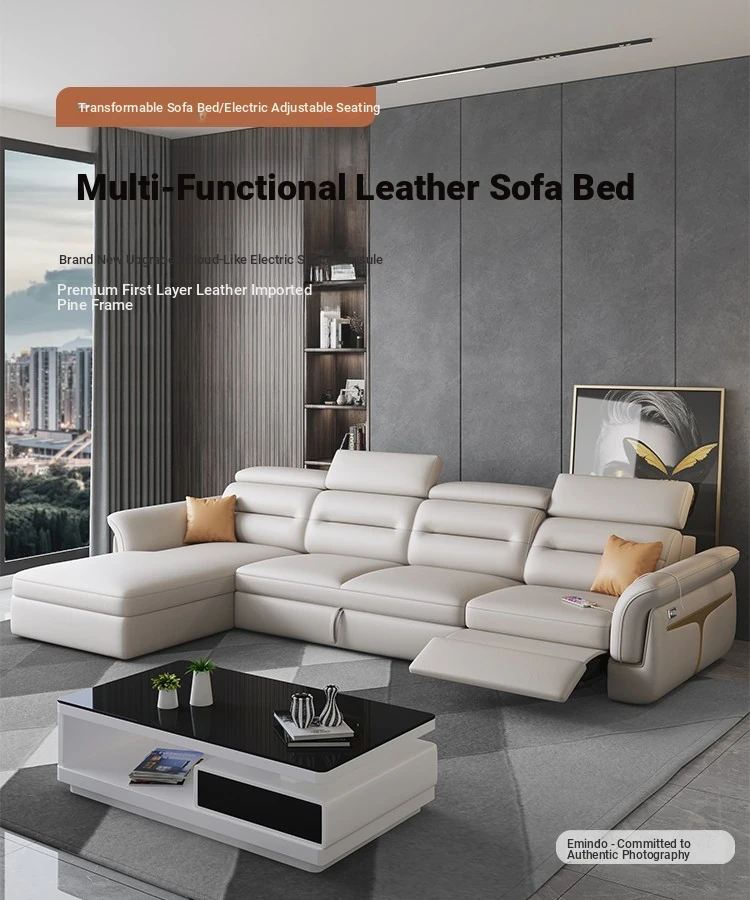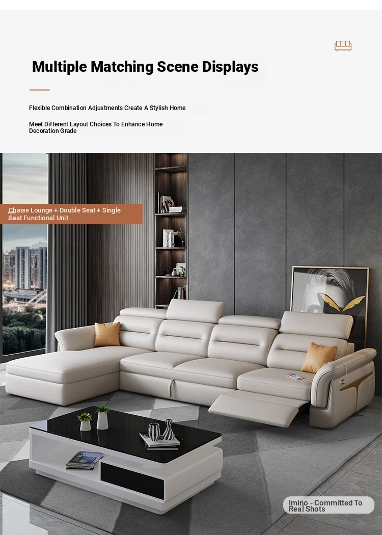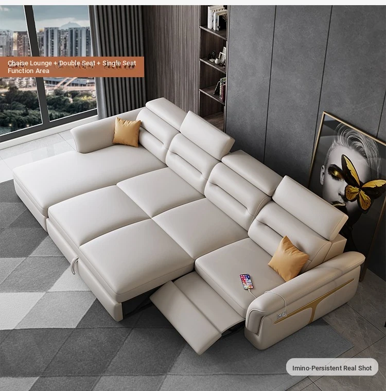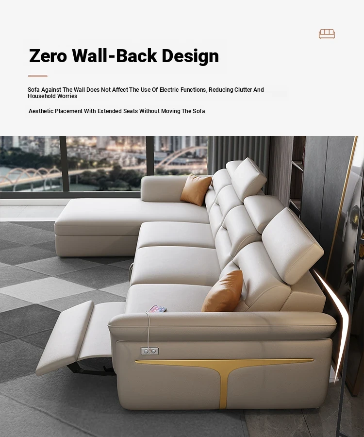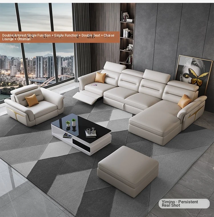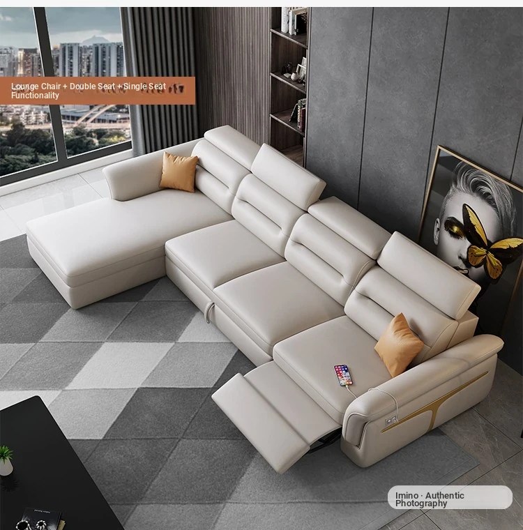 Multi-functional Top-Grain Leather Sofa - Italian Luxury Modern Living Room Furniture with Wall-Free Electric Leather Sofa Set