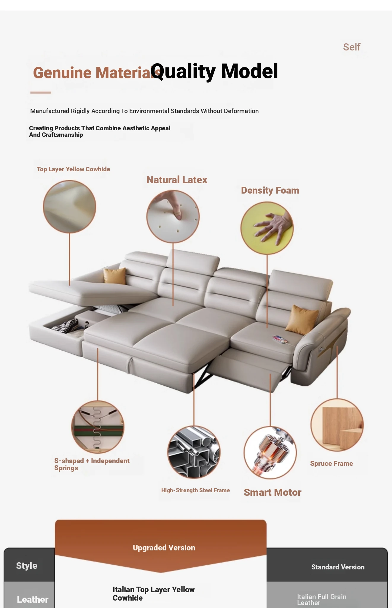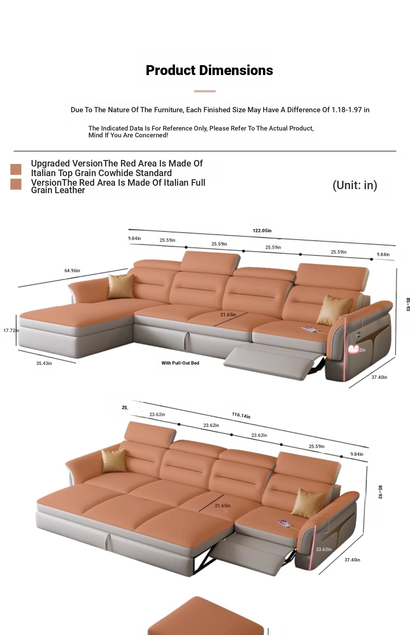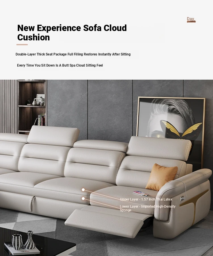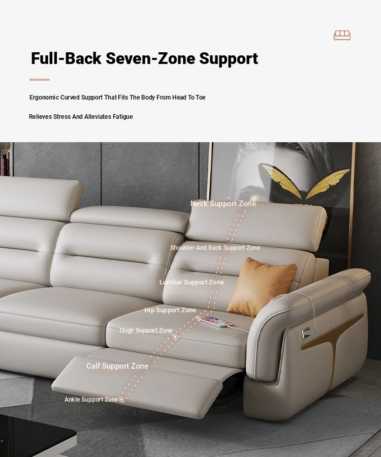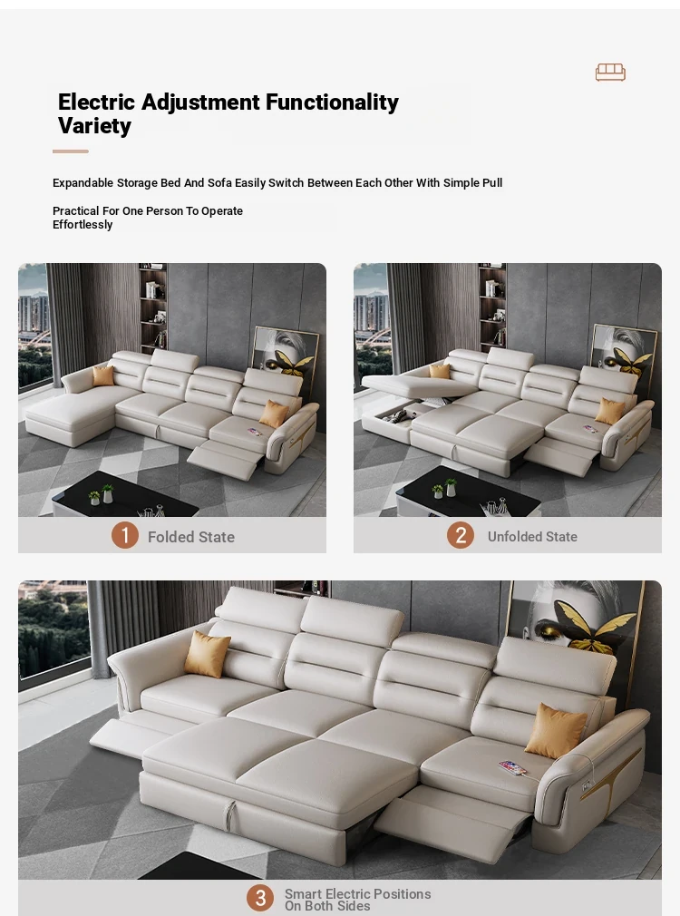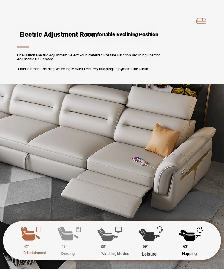 Multi-functional Top-Grain Leather Sofa - Italian Luxury Modern Living Room Furniture with Wall-Free Electric Leather Sofa Set