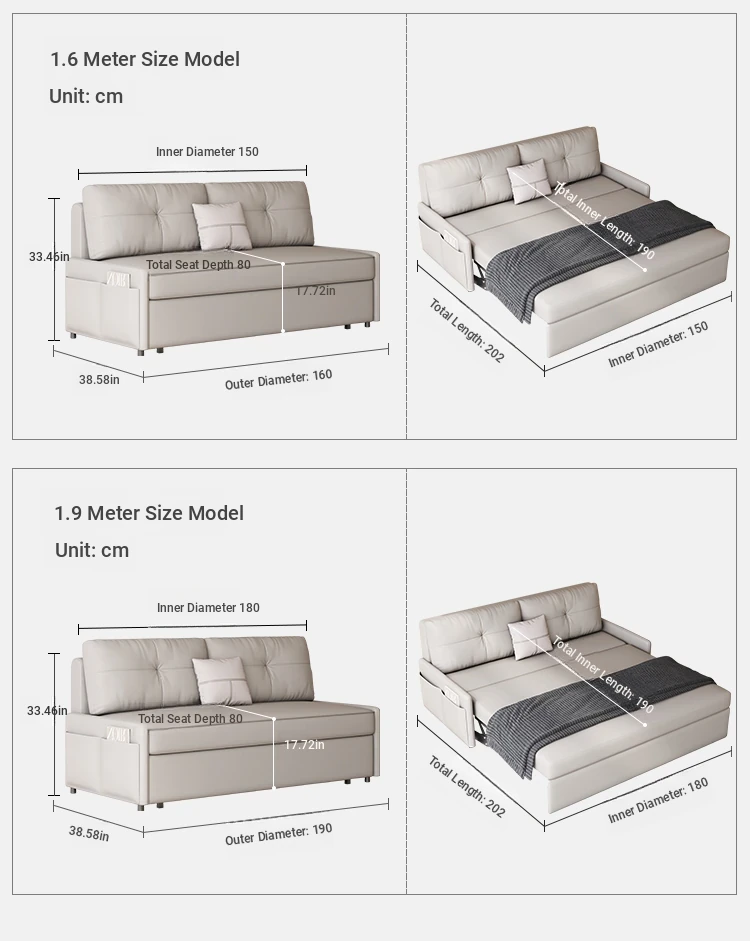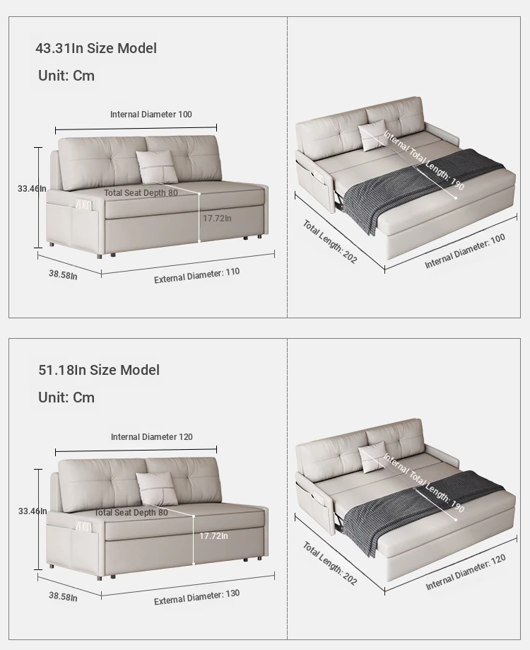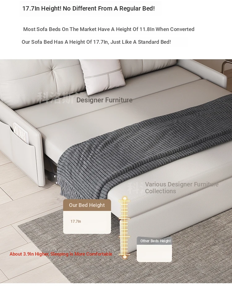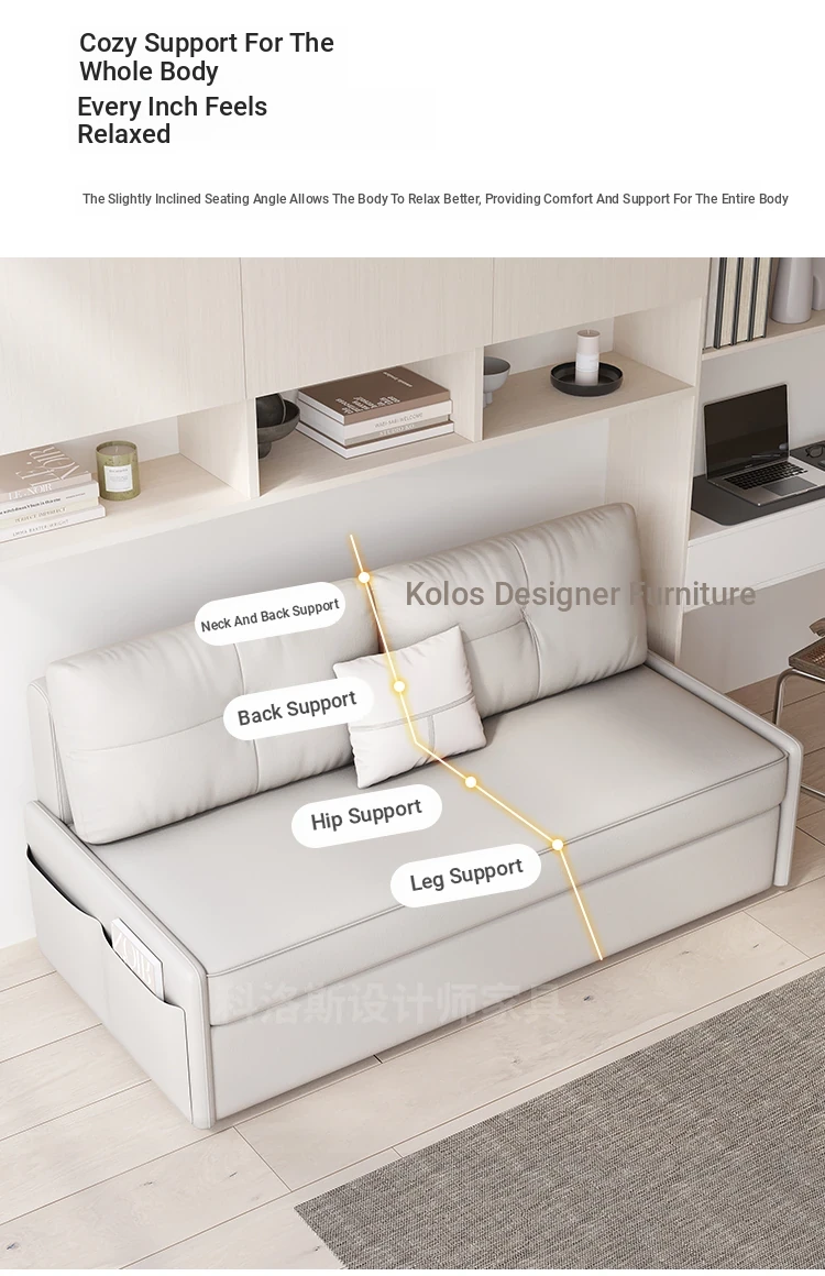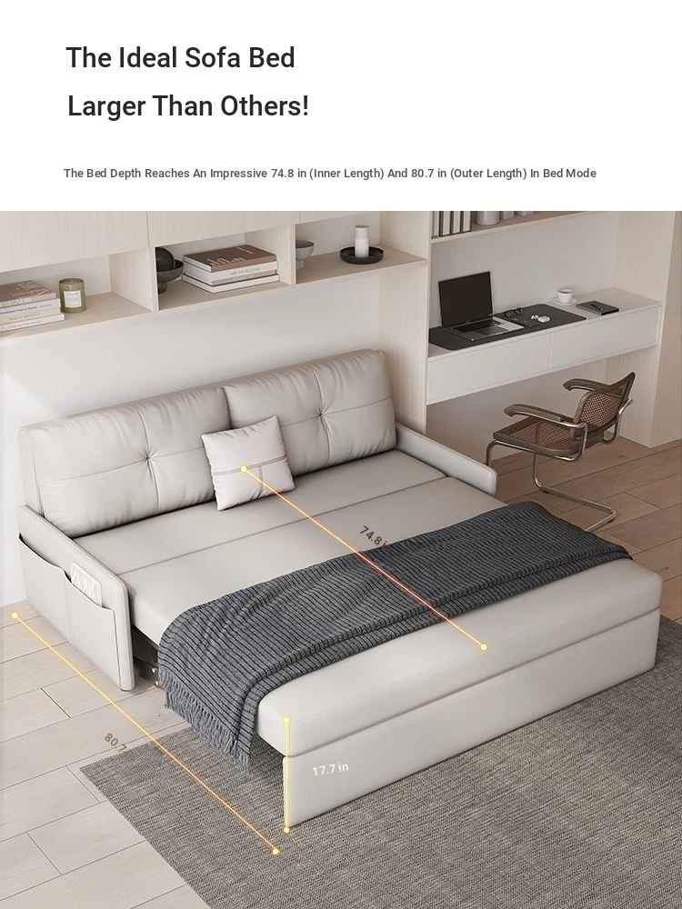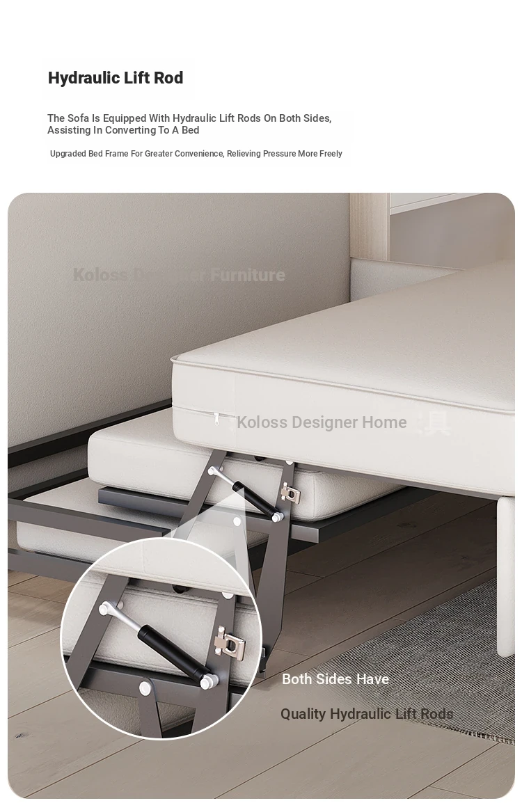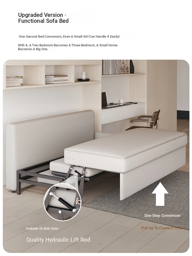 New Luxury Hydraulic Armrest-Free Sofa Bed - Stylish Single Folding Bed for Living Room and Study, Ideal for Afternoon Naps and Space-Saving Solutions