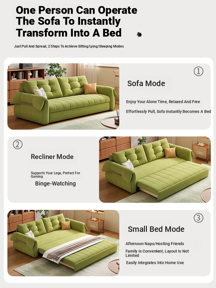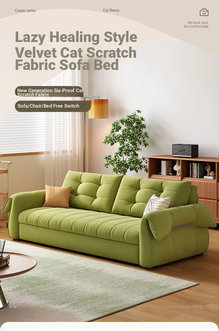 Nordic Minimalist Foldable Sofa Bed - Stylish and Space-Saving Fabric Sofa for Small Living Rooms, Retro Design Perfect for Trendy Homes