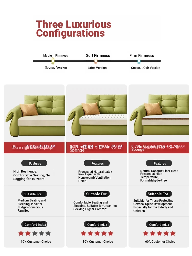 (Effective Ridge protection) 120.47in sofa bed [Environmental-Friendly coconut palm + storage box]]