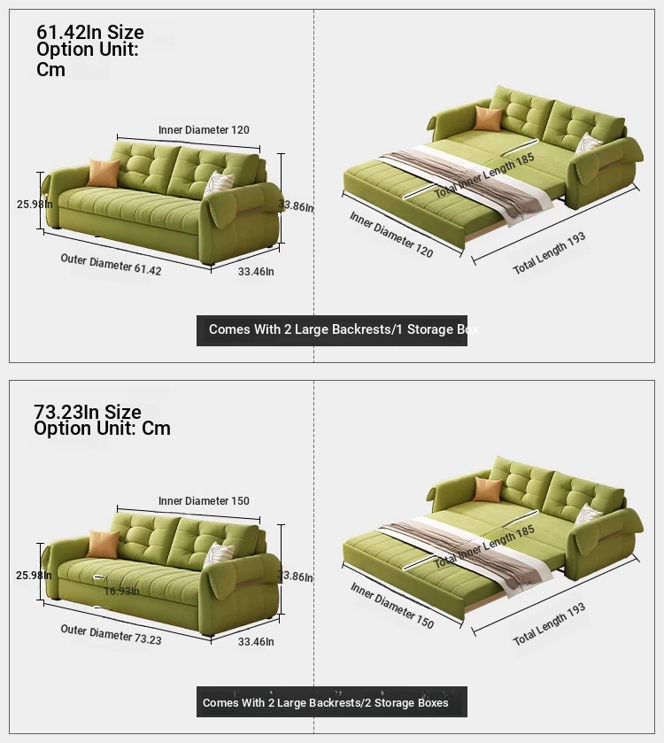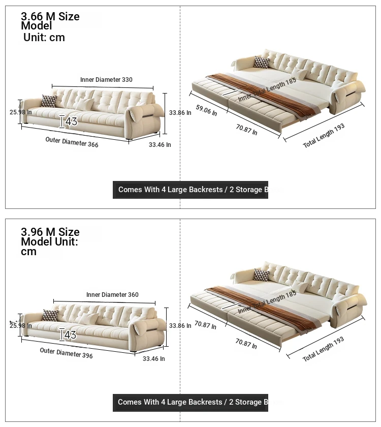 (Moderate hard and soft) 155.91in sofa bed [powder-free sponge + storage box]]