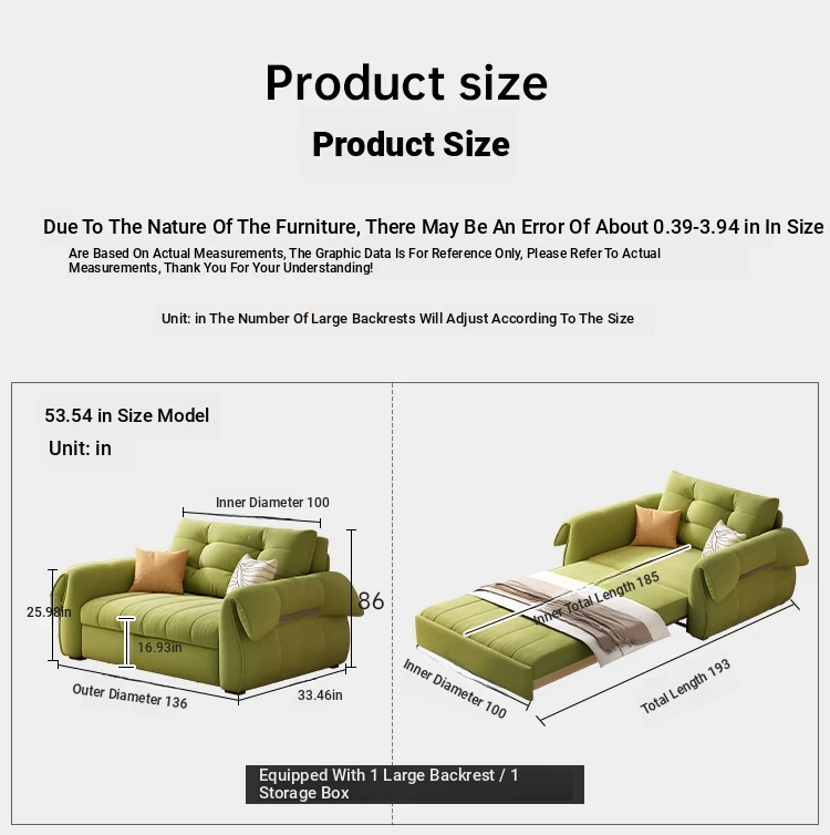 (Moderate hard and soft) 53.54in sofa bed [powder-free sponge + storage box]]