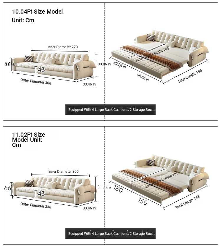 (Moderate hard and soft) 144.09in sofa bed [powder-free sponge + storage box]]