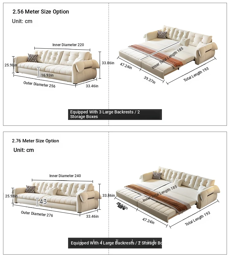(Moderate hard and soft) 96.85in sofa bed [powder-free sponge + storage box]]
