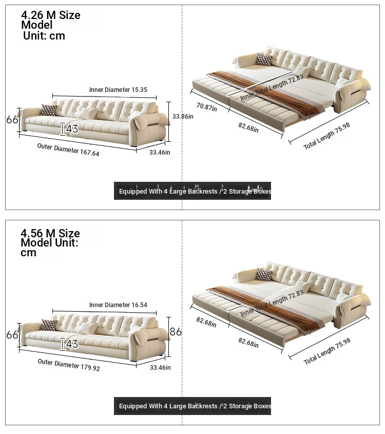 (Soft and hard moderate) 167.72in sofa bed [powder-free sponge + storage box]]