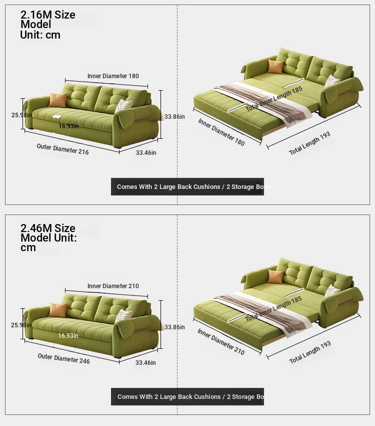 (Soft and hard moderate) 85.04in sofa bed [powder-free sponge + storage box]]