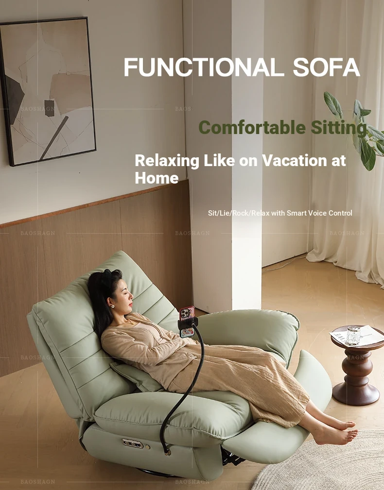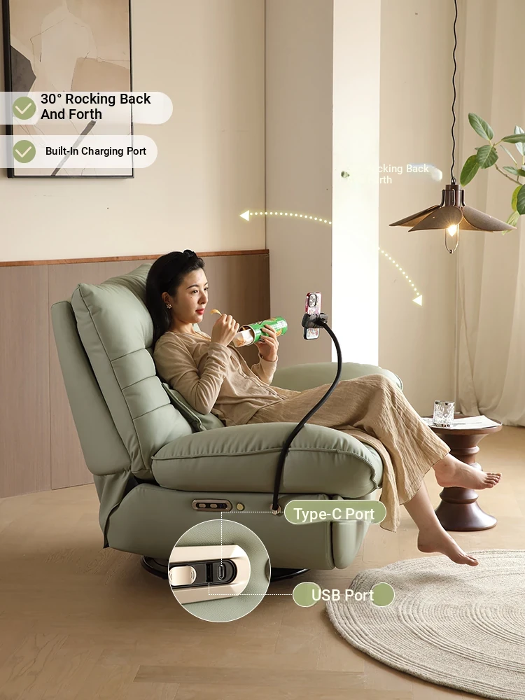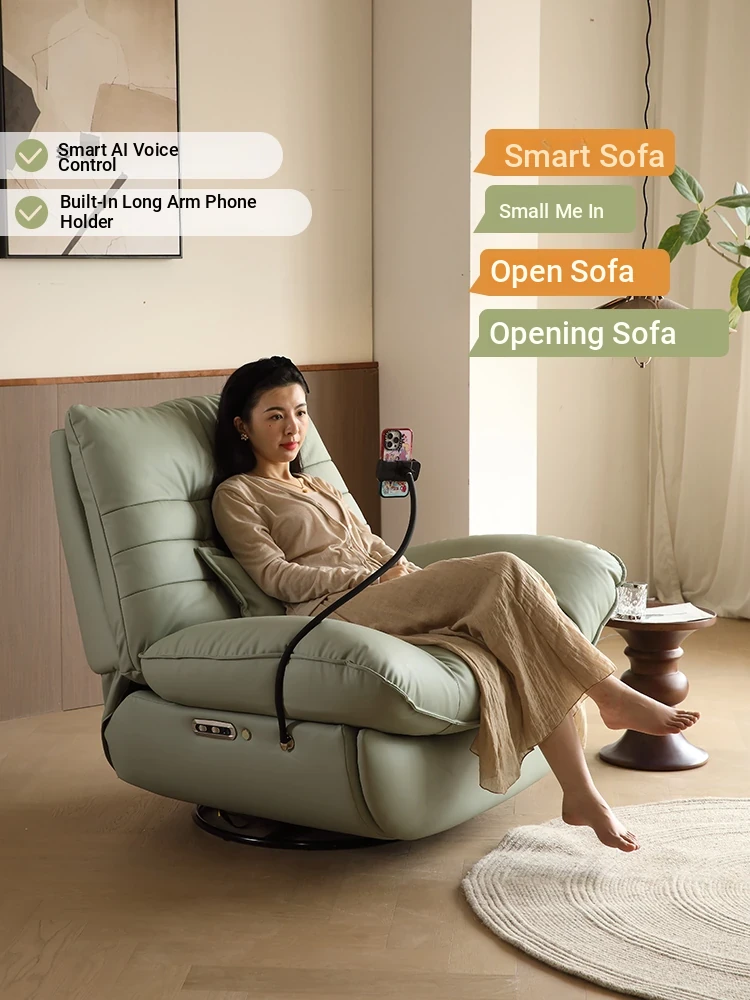Premium Full-Grain Leather Multifunctional Electric Recliner - Modern Minimalist Smart Voice-Controlled Lounge Sofa for Ultimate Comfort in Your Living Room