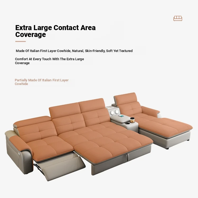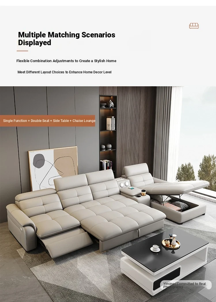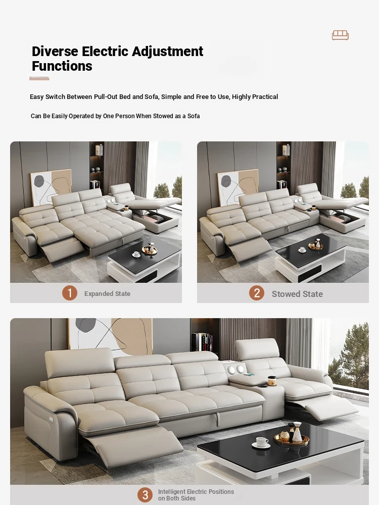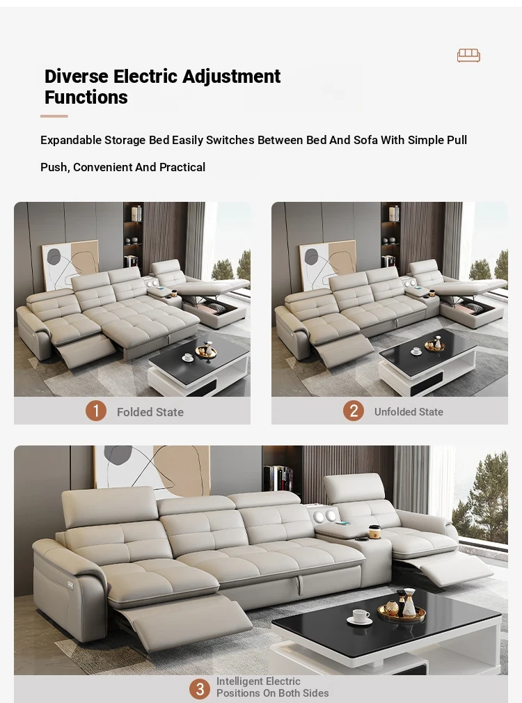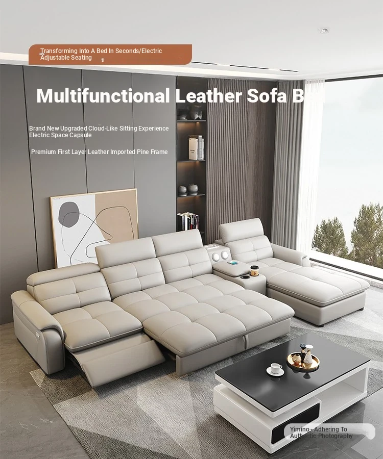 Premium Genuine Leather Multifunctional Sofa Bed - Electric Folding Design for Small to Large Living Spaces, Modern Chic Style for Ultimate Comfort and Versatility.