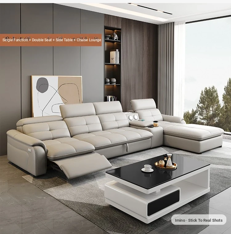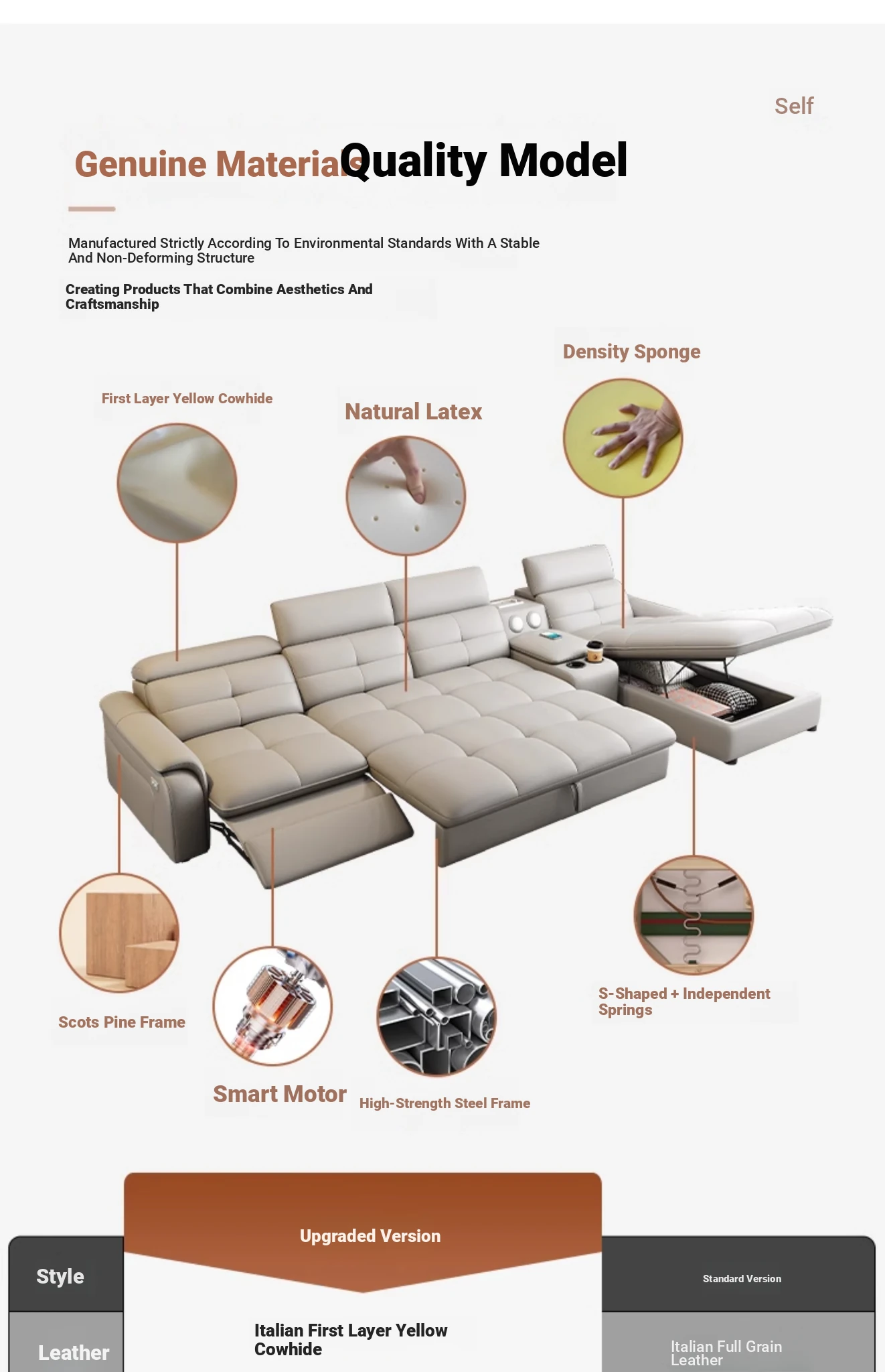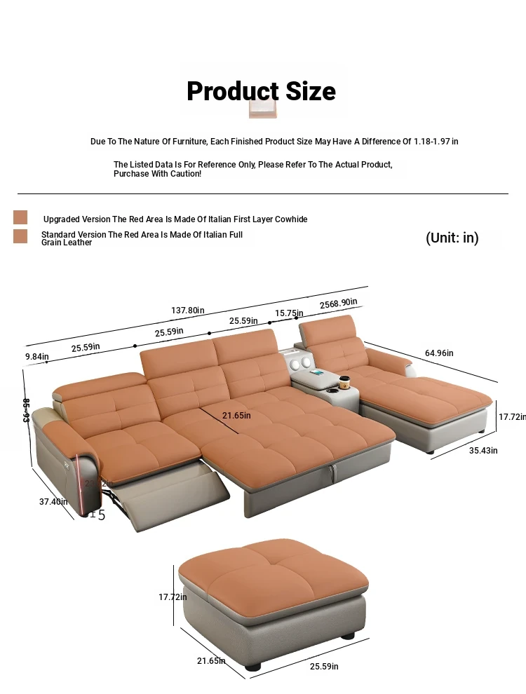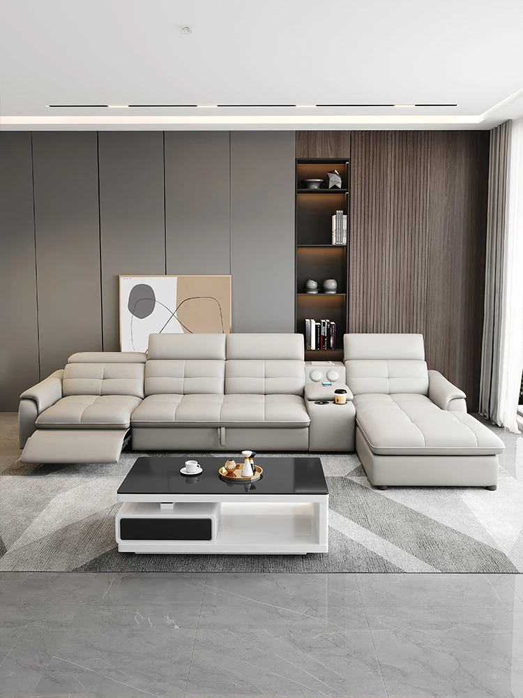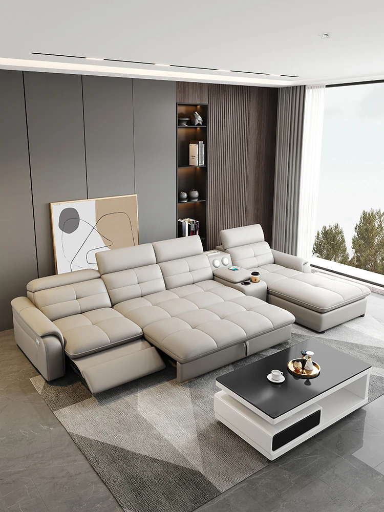 Premium Genuine Leather Multifunctional Sofa Bed - Electric Folding Design for Small to Large Living Spaces, Modern Chic Style for Ultimate Comfort and Versatility.