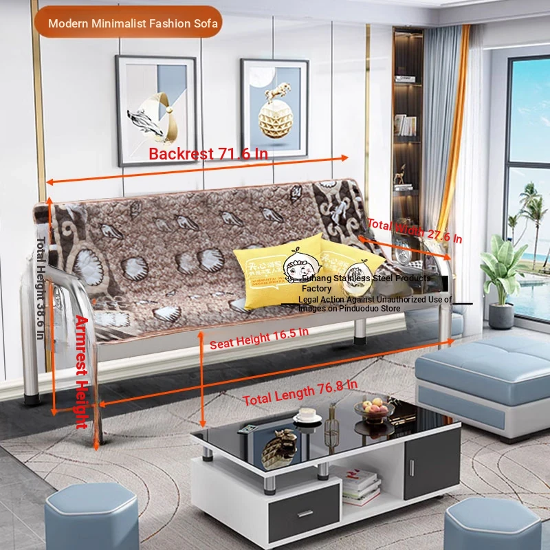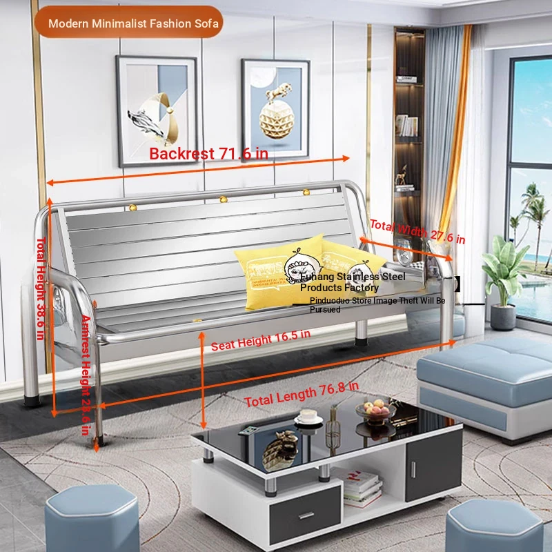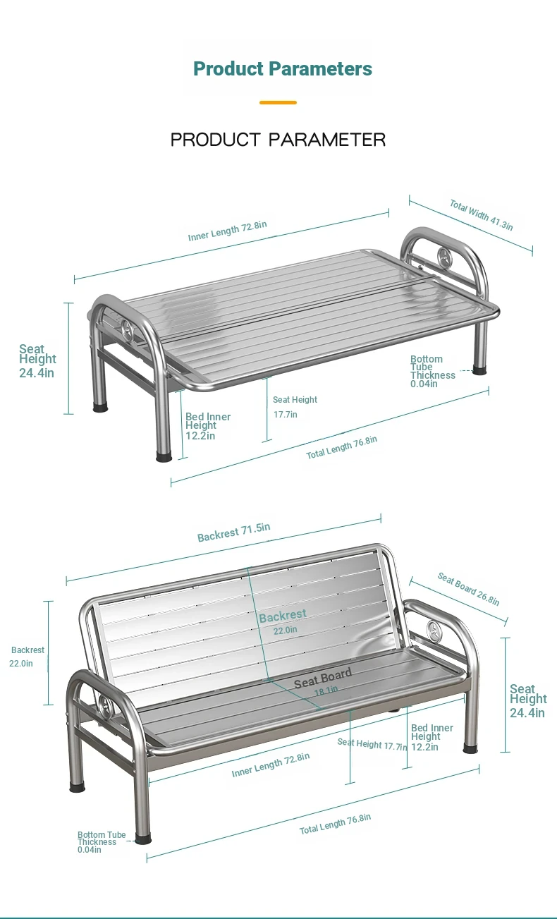Premium Stainless Steel Sofa Bed - Thickened Design for Rural Homes, Versatile Folding Couch for Living Room Use, Perfect Bench and Sofa Combo!