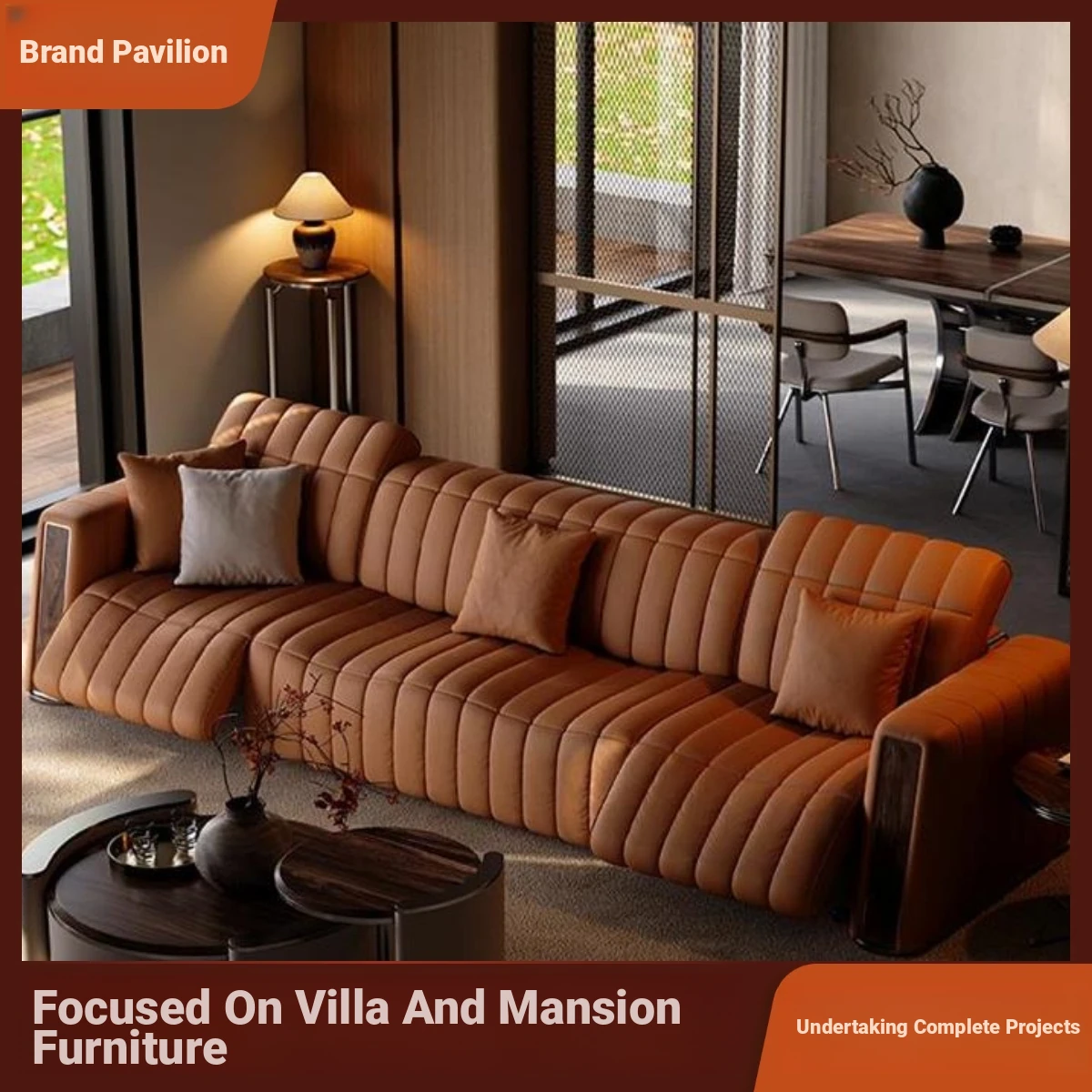 Smart Italian Leather Electric Sofa for Open-plan Villas – Luxurious All-in-one Soft Furnishing Solution for Your Living Room