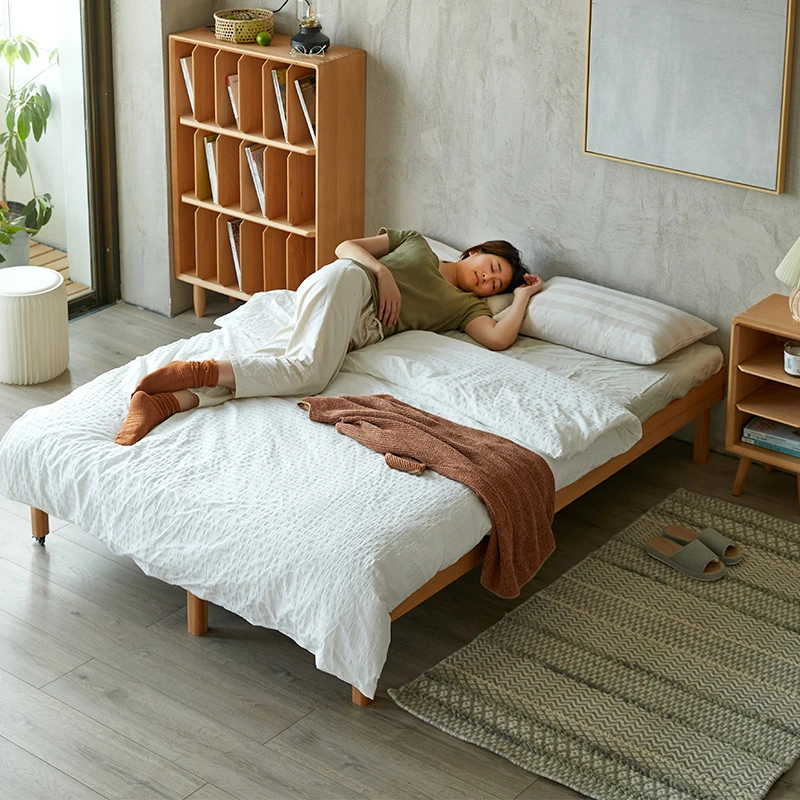 Space-Saving Folding Sofa Bed for Small Apartments - Dual-Use Solid Wood Pull-Out Bed for Singles and Couples in Living Room