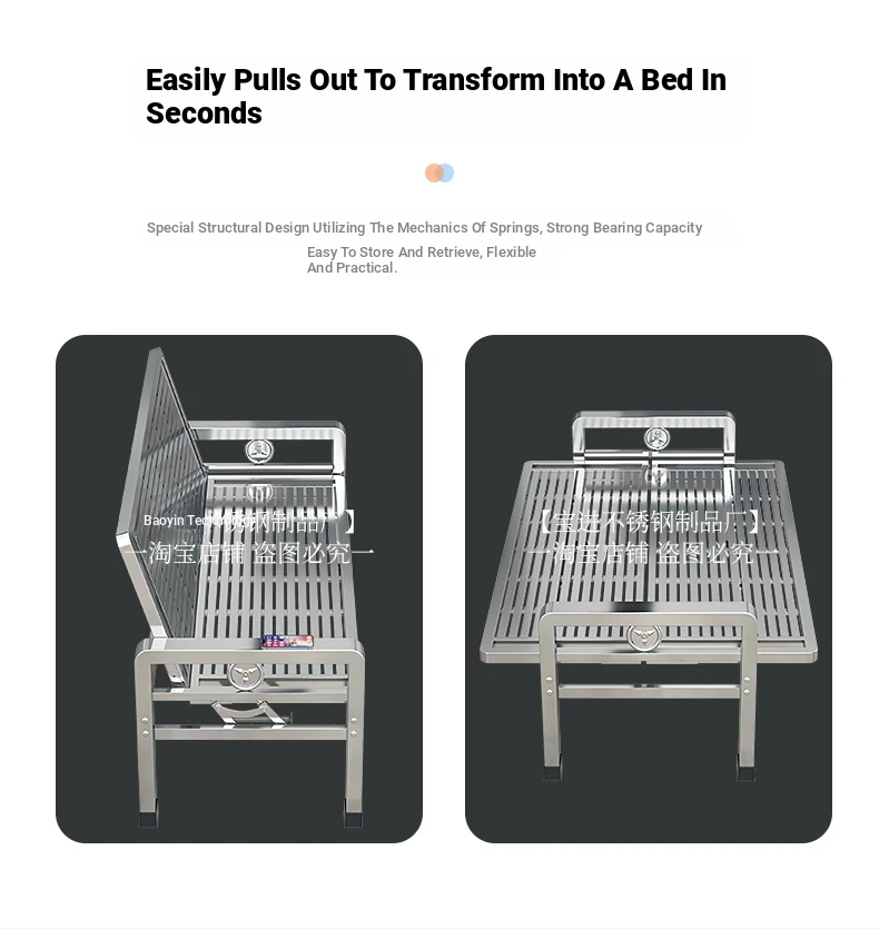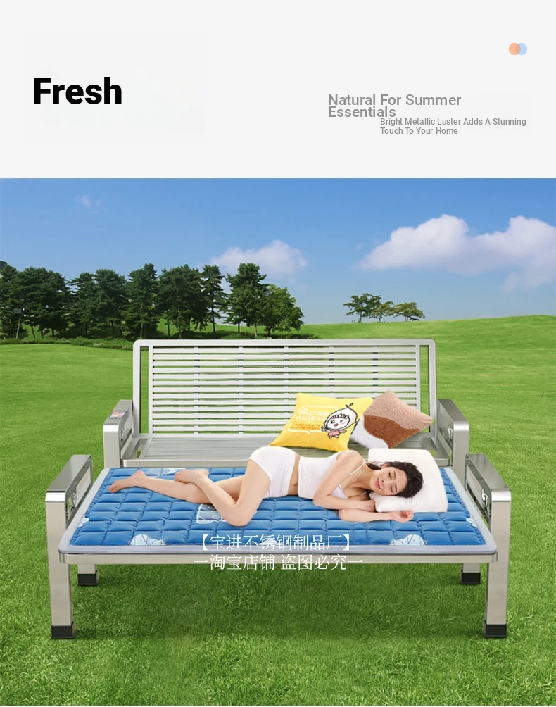 Stainless Steel Folding Bench - Thickened Modern Iron Sofa for Home & Office, Perfect for Living Room & Rural Use, Stylish & Versatile Design