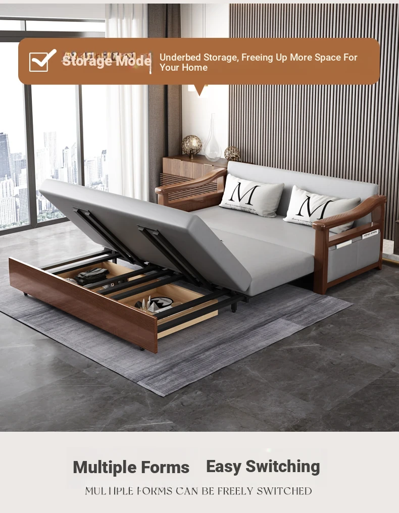 Stylish Tech Fabric Sofa Bed for Small Spaces - Trendy Single-Foldable Design with Solid Wood Frame, Perfect Multi-Functional Addition for Your Living Room!