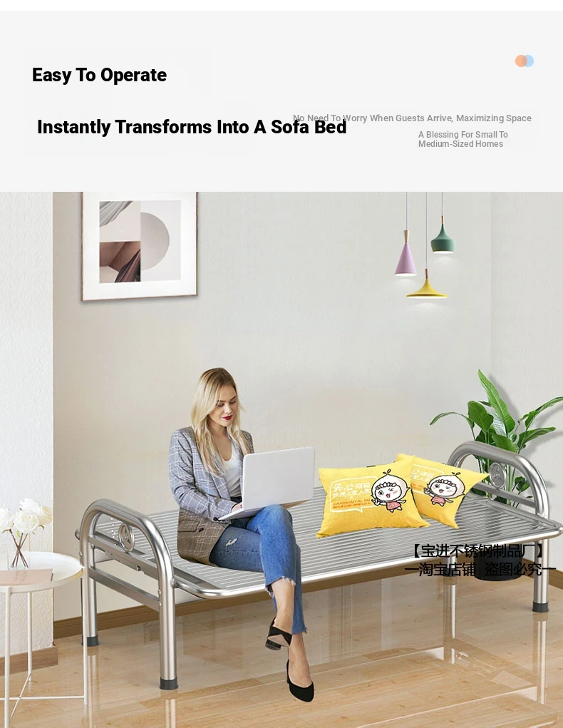 Thickened Stainless Steel Sofa Bed - Versatile Foldable Couch for Living Room and Office - Easy-to-Use Iron Bench for Home Comfort and Style