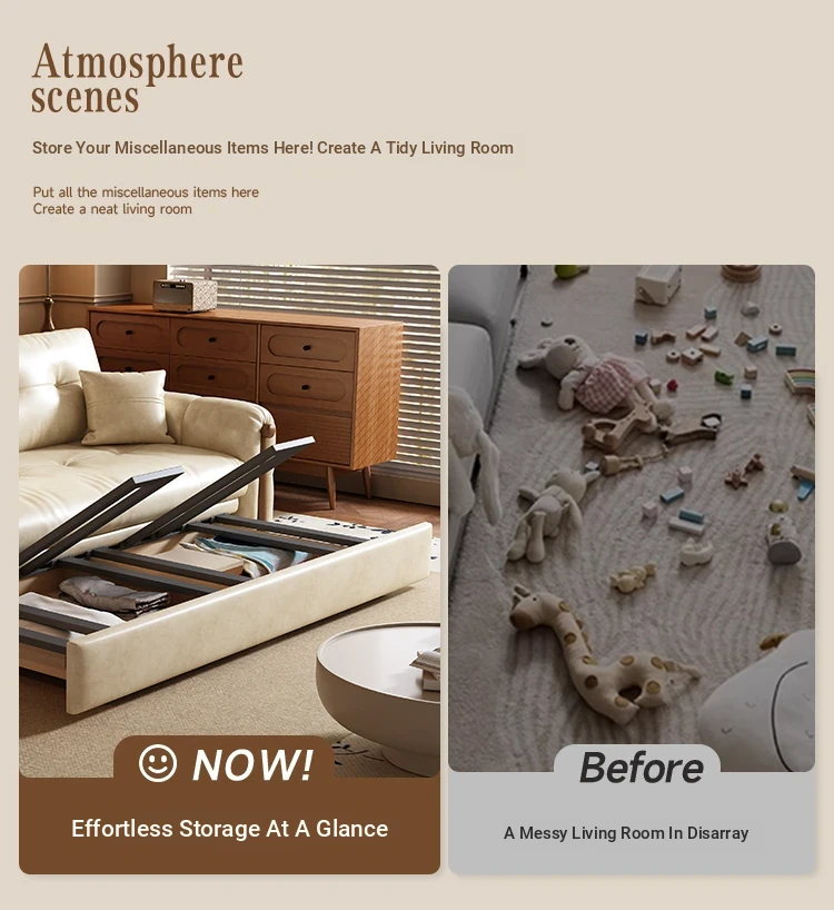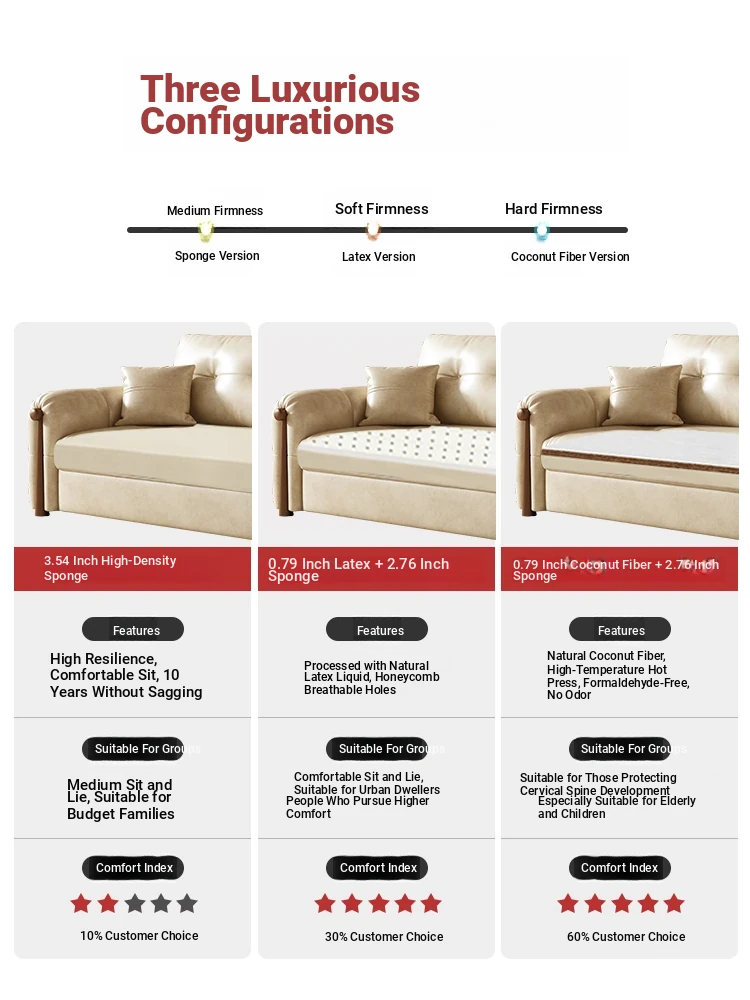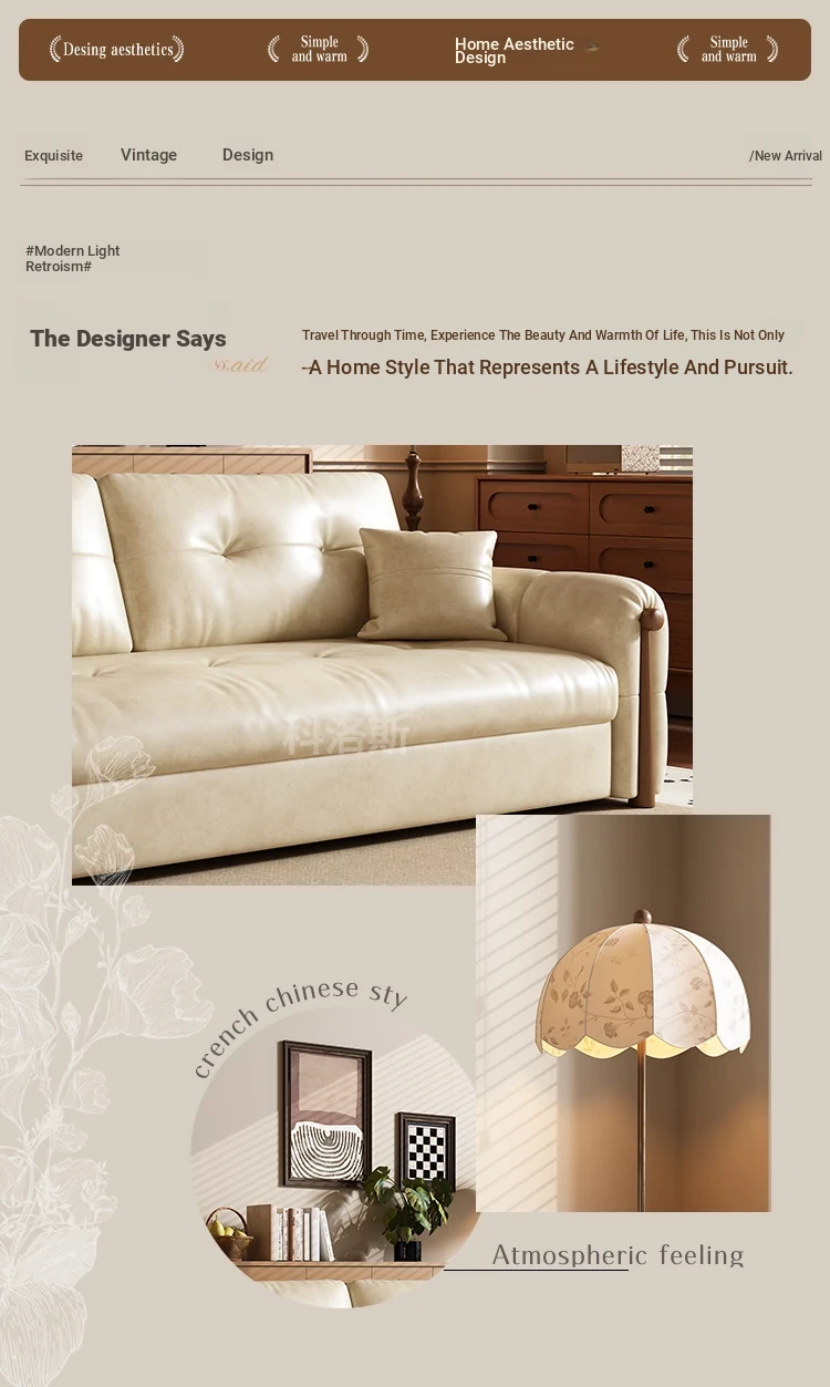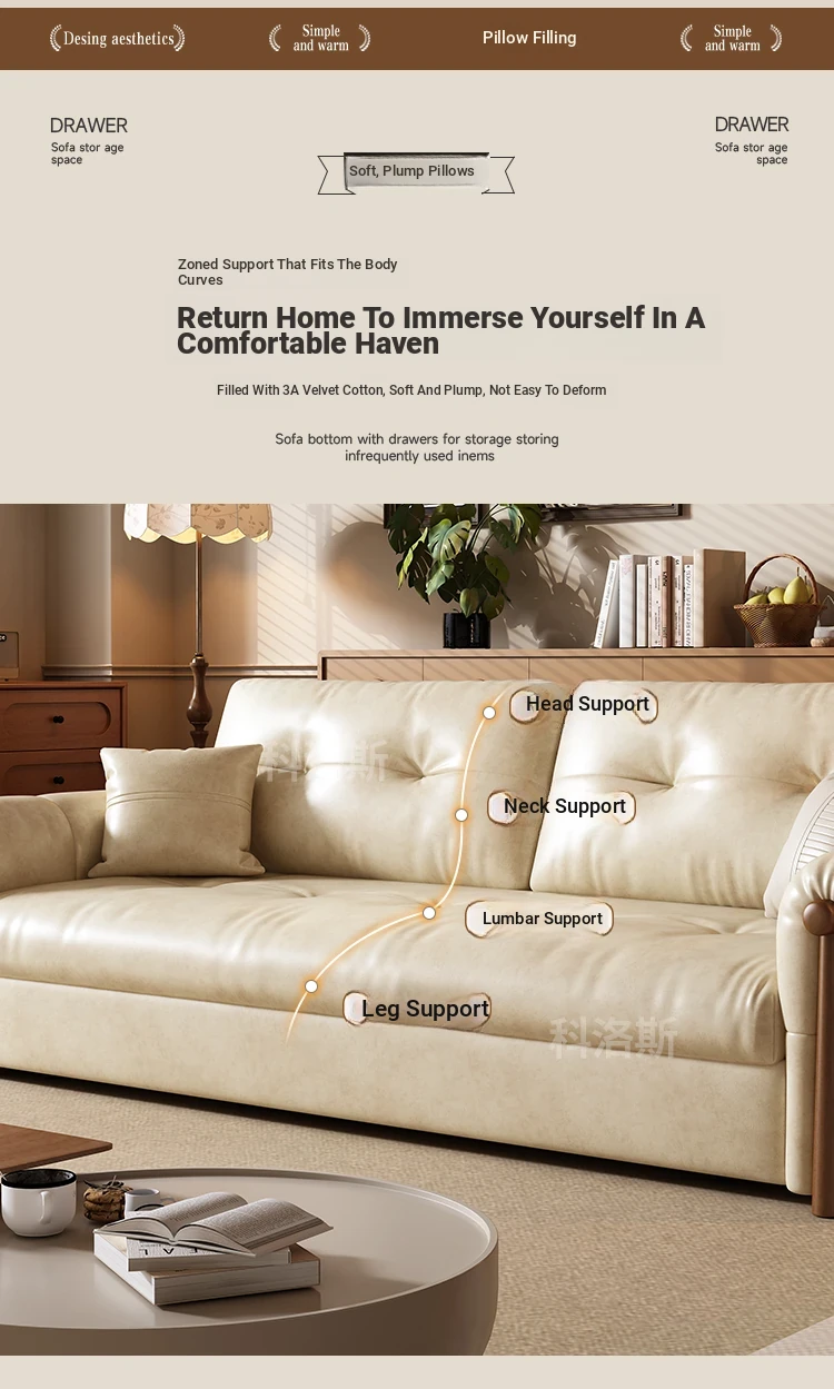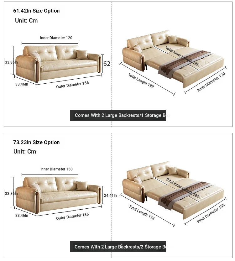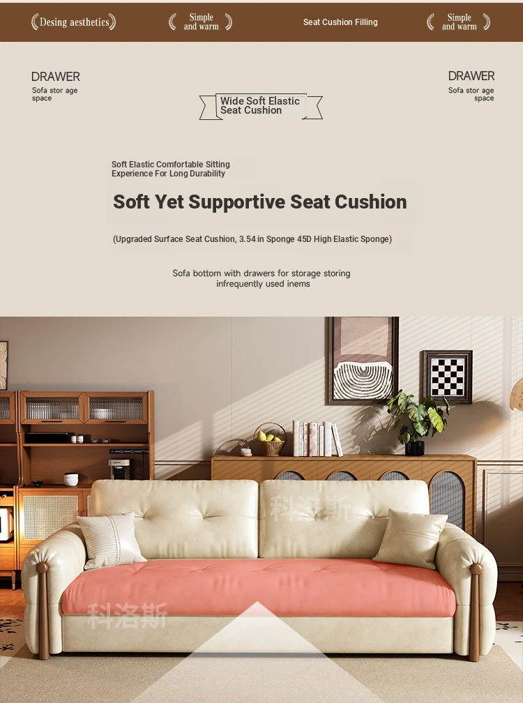 Vintage Cream Sofa - Foldable Solid Wood Dual-Use Retro Design for Small Spaces, 2025 New Waxed Leather Sofa Bed