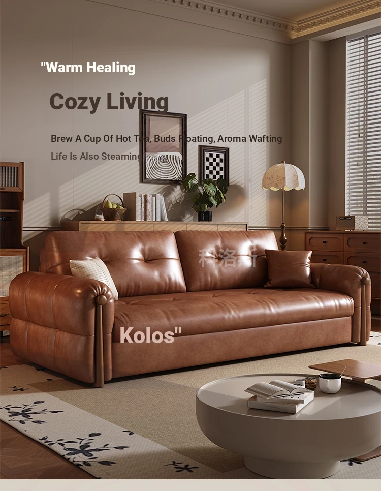 (Q feeling sitting feeling) 85.04in sofa bed [natural latex | Retro oil wax leather]]