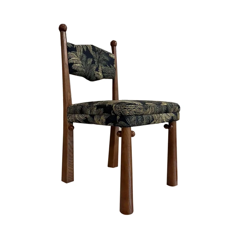 Vintage Solid Wood Dining Chair - Retro Ash Wood Home Furniture with Soft Backrest, Perfect for French-style Dining Rooms and Trendy Restaurants.