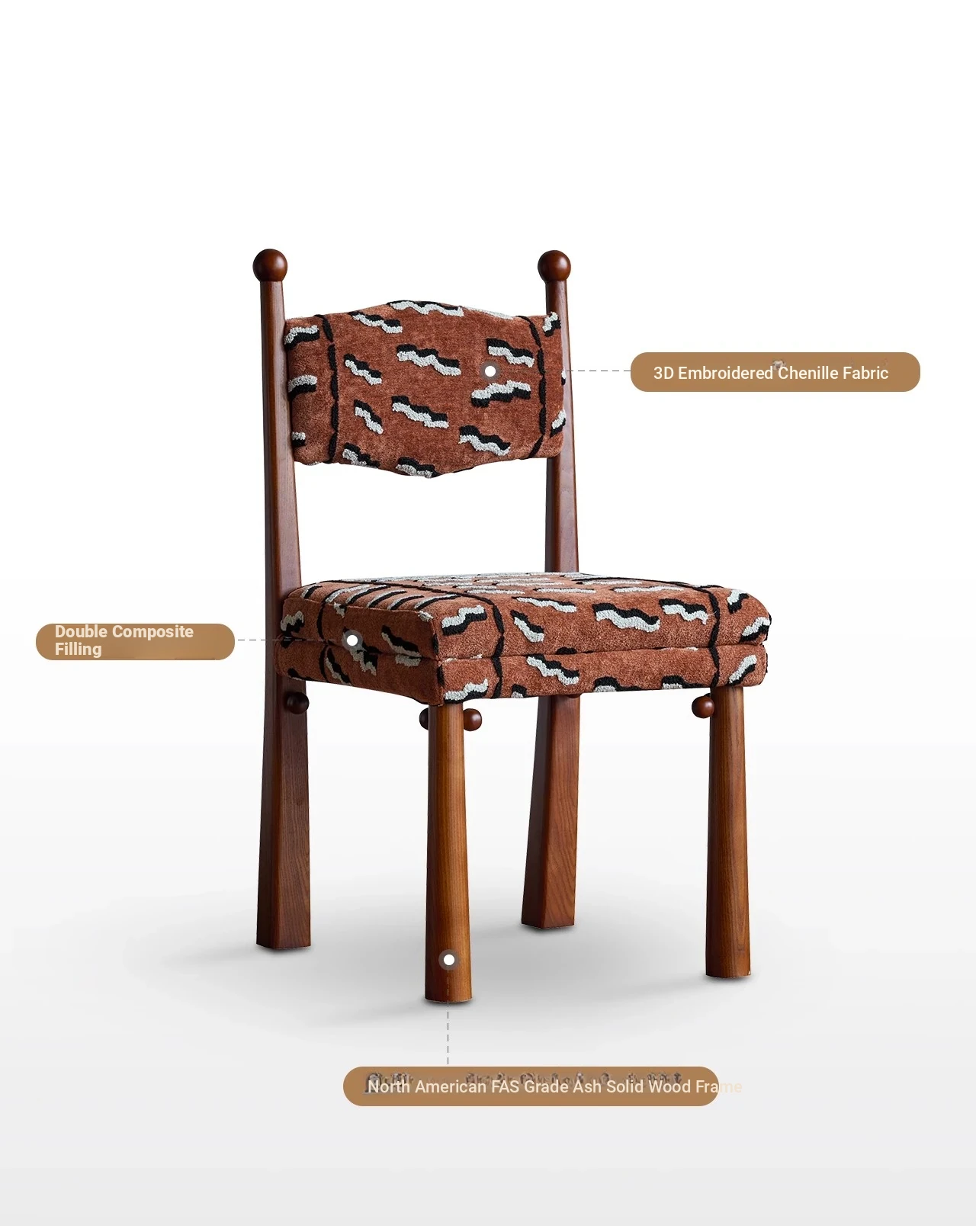 Walnut + Orange 3D stereo Embroidered chenille * 1