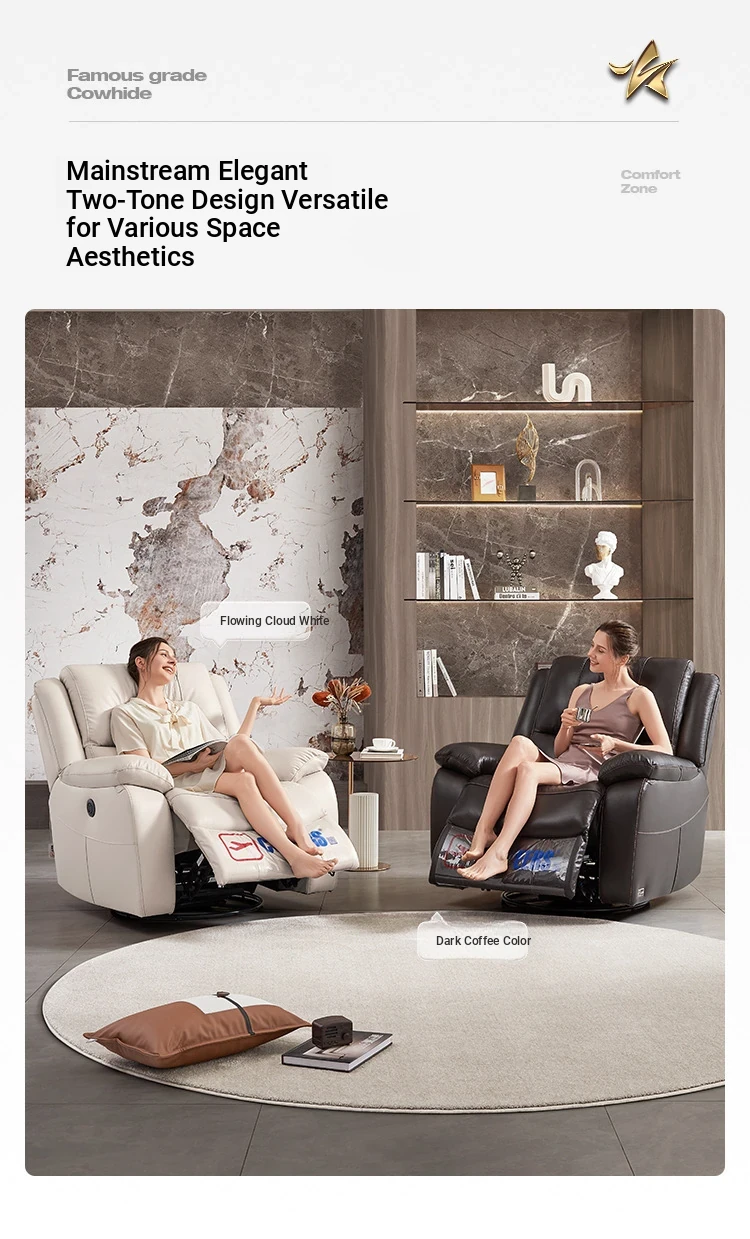 Zhiwa Modern Minimalist Leather Electric Recliner Chair - Versatile Lounge Armchair for Living Room, Rocking and Swiveling, Perfect for Relaxation - Model K135
