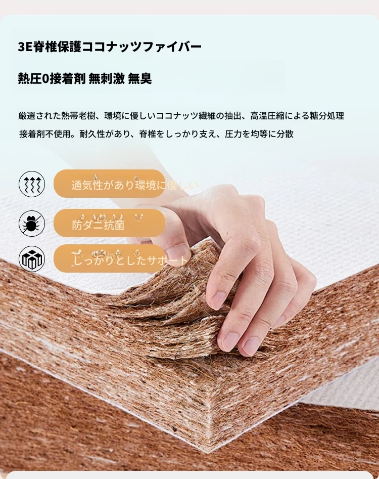 含扶手1.86米-背中を支えるココナッツファイバータイプ-収納付き